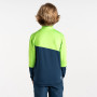 La felpa con cappuccio è realizzata in tessuto Ilus Core riciclato, estremamente morbido al tatto e dotato di un pile spazzolato all'interno per tenere i bambini al caldo. Questo materiale è ad asciugatura rapida e ha proprietà antibatteriche che prevengono i cattivi odori. Non contiene sostanze chimiche. La zip corta consente di regolare la temperatura ed è dotata di una protezione per il mento. Il colletto più alto protegge i bambini dalle intemperie. La felpa ha una protezione UV (UPF) 50+ e dettagli riflettenti per una migliore visibilità.