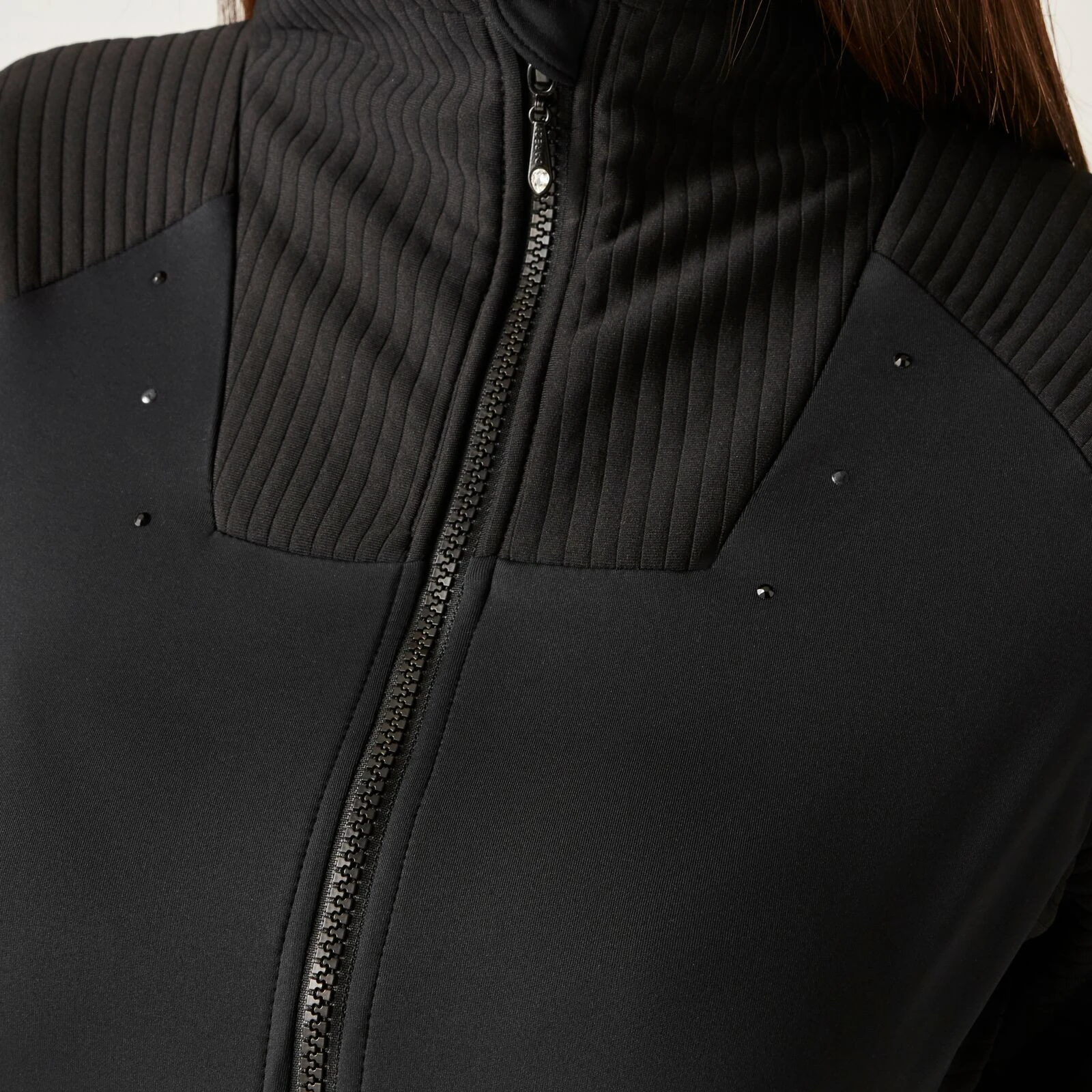 La felpa funzionale da donna Sleek Midlayer di Dare 2b unisce funzionalità e design elegante. Realizzata in tessuto elasticizzato riciclato con elastan, offre elevata flessibilità e comfort durante i movimenti sulla neve e non solo. La felpa ha un taglio lusinghiero, un collo alto per la protezione dal freddo e due tasche inferiori con zip per riporre in sicurezza piccoli oggetti. Gli ornamenti in cristalli Swarovski conferiscono alla felpa un aspetto premium e assicurano un look elegante anche durante le attività all'aperto.