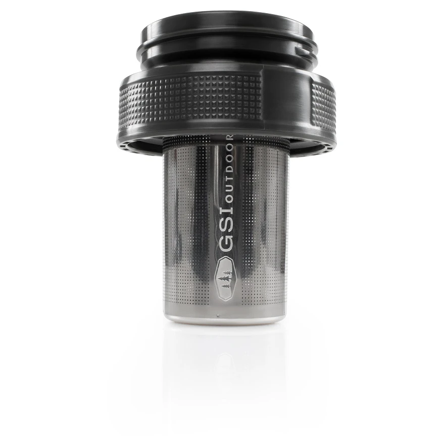 Il filtro per caffè e tè H2Jo del produttore GSI Outdoors è realizzato con una combinazione di acciaio inossidabile, polietilene e silicone. Grazie a questo filtro fine, il caffè o il tè possono essere preparati direttamente in bottiglie di plastica o thermos trasportabili. Il filtro è compatibile con la maggior parte delle bottiglie a bocca larga (1L).