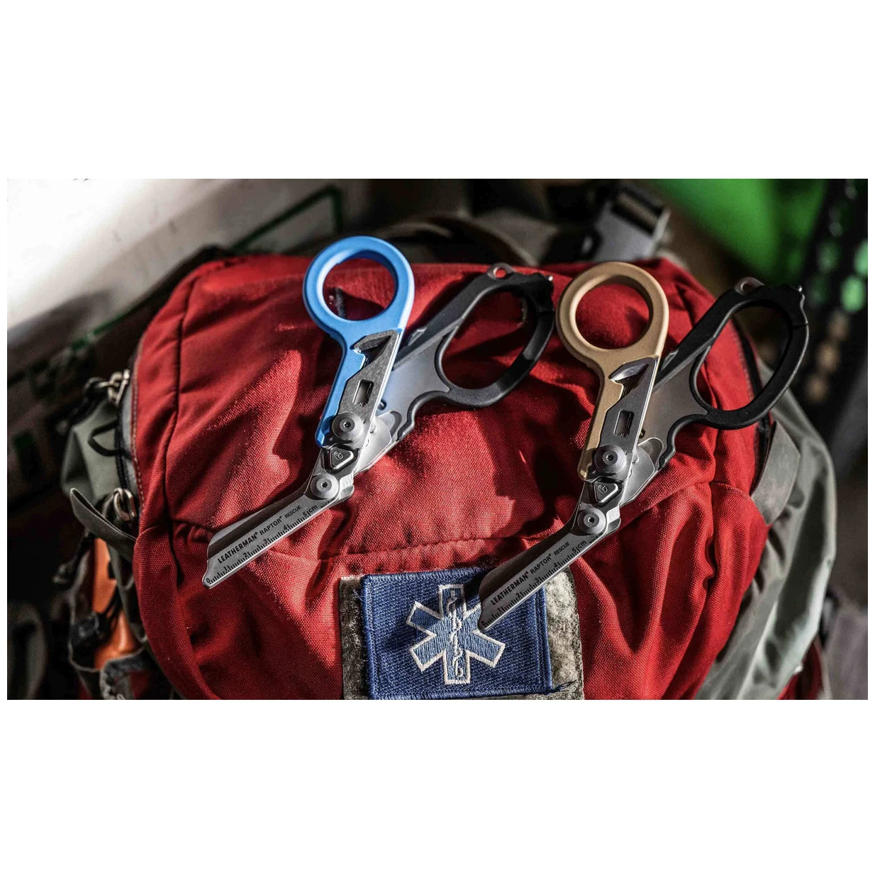 Il Leatherman Raptor® Rescue è uno strumento di soccorso multifunzionale. Si tratta di una lavorazione di altissima qualità con diverse funzioni salvavita. Le forbici mediche pieghevolisono realizzate in acciaio 420HC extra resistente e sono combinate con un taglia anelli e un taglia cinture di sicurezza. Nel manico in fibra di vetro delle forbici si trova una punta in carburo di tungsteno, un materiale estremamente duro che può rompere i vetri di sicurezza delle auto incidentate.