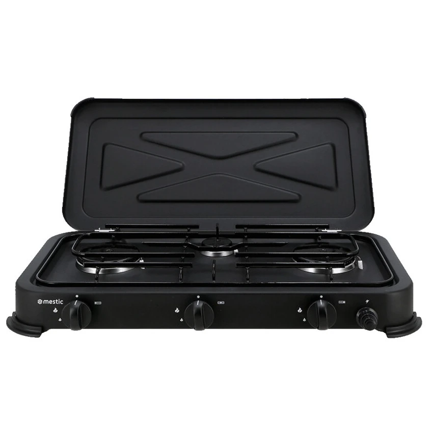 Mestic MGC-300 30mbar è un pratico fornello a gas a tre fuochi , che permette di cucinare comodamente all'aperto. Dispone di due bruciatori potenti con una potenza di 2,2 kW e un bruciatore più piccolo con una potenza di 0,85 kW, che ti permettono di preparare cibi con diverse intensità. Grazie a due griglie stabili, è possibile posizionare contemporaneamente sul fornello anche pentole e padelle più grandi.