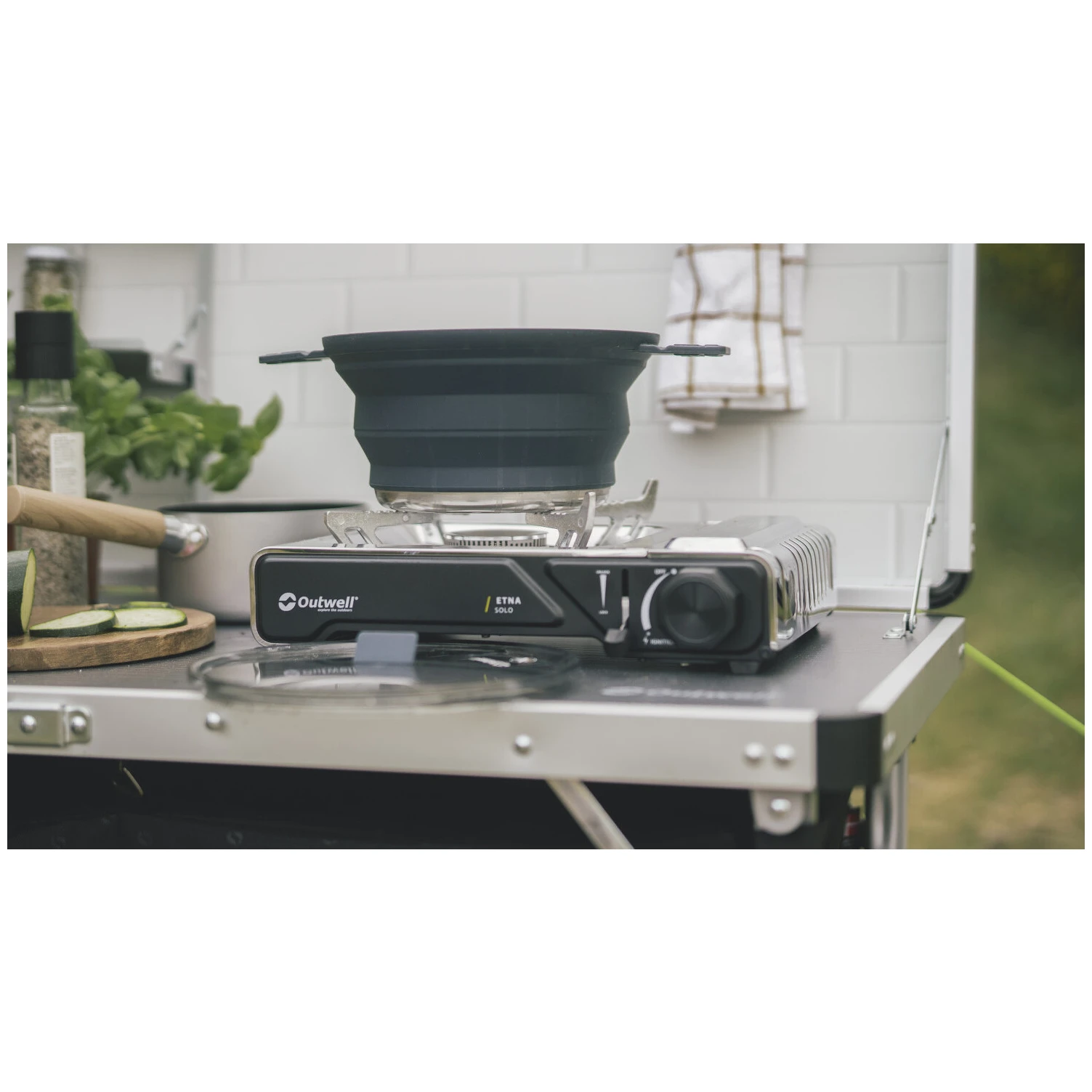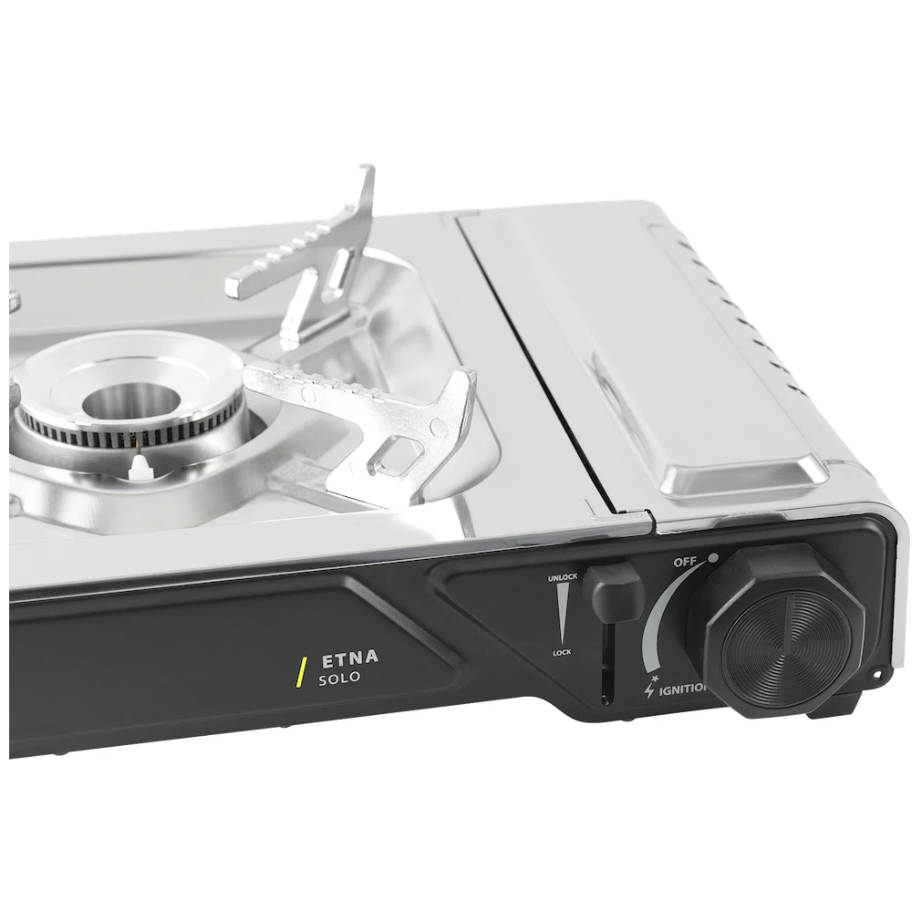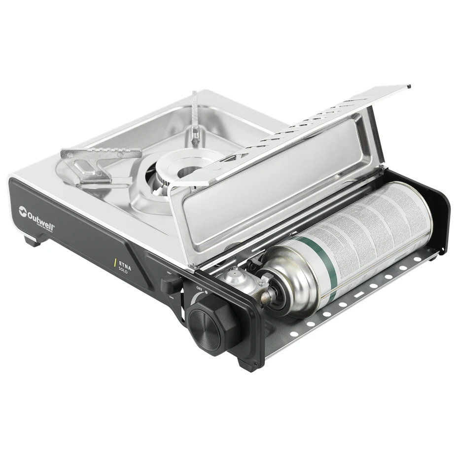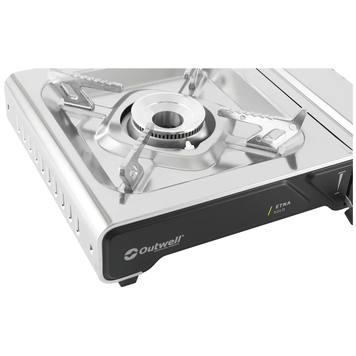 Fornello a gas a un bruciatore Etna Solo del produttore danese Outwell è un aiuto indispensabile per il campeggio e per il giardino. Il materiale in acciaio e acciaio inossidabile garantisce una lunga durata. La struttura è bassa, molto stabile grazie a piedini in plastica e i bruciatori sono dotati di un'ampia griglia per un appoggio sicuro della pentola.