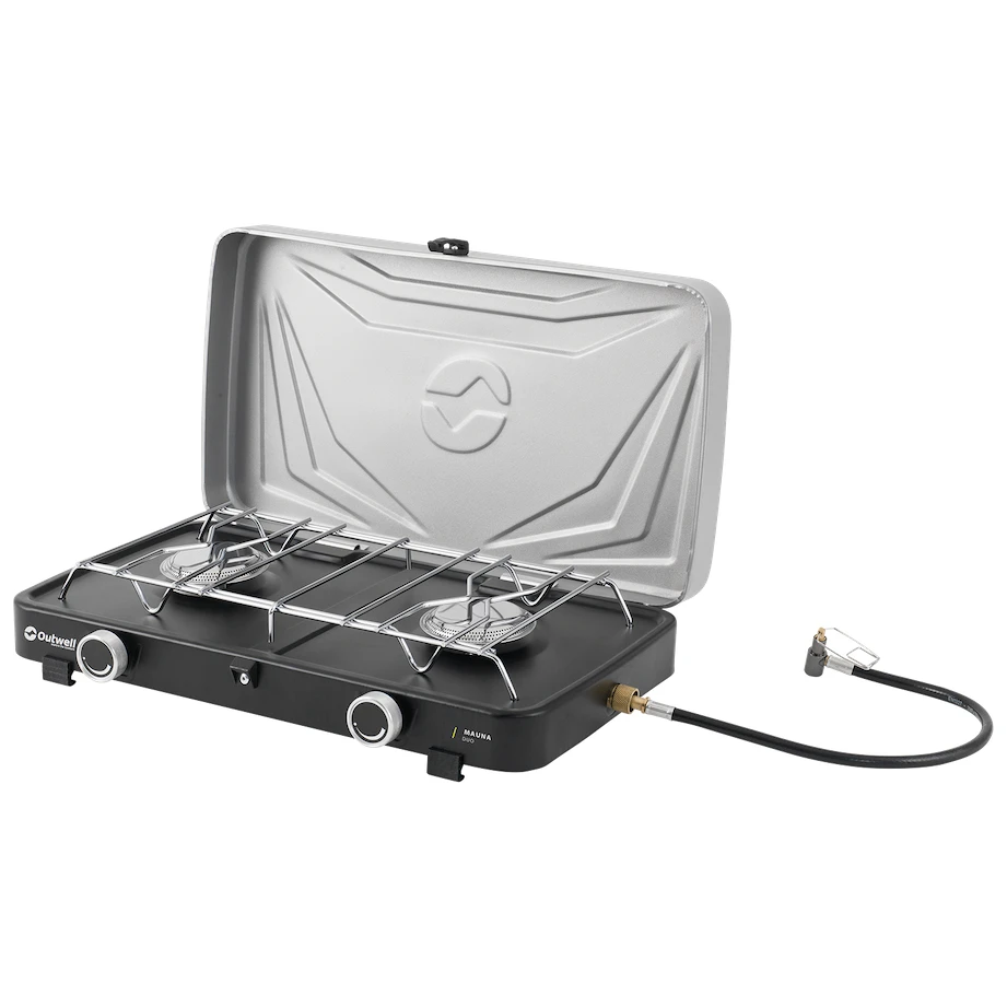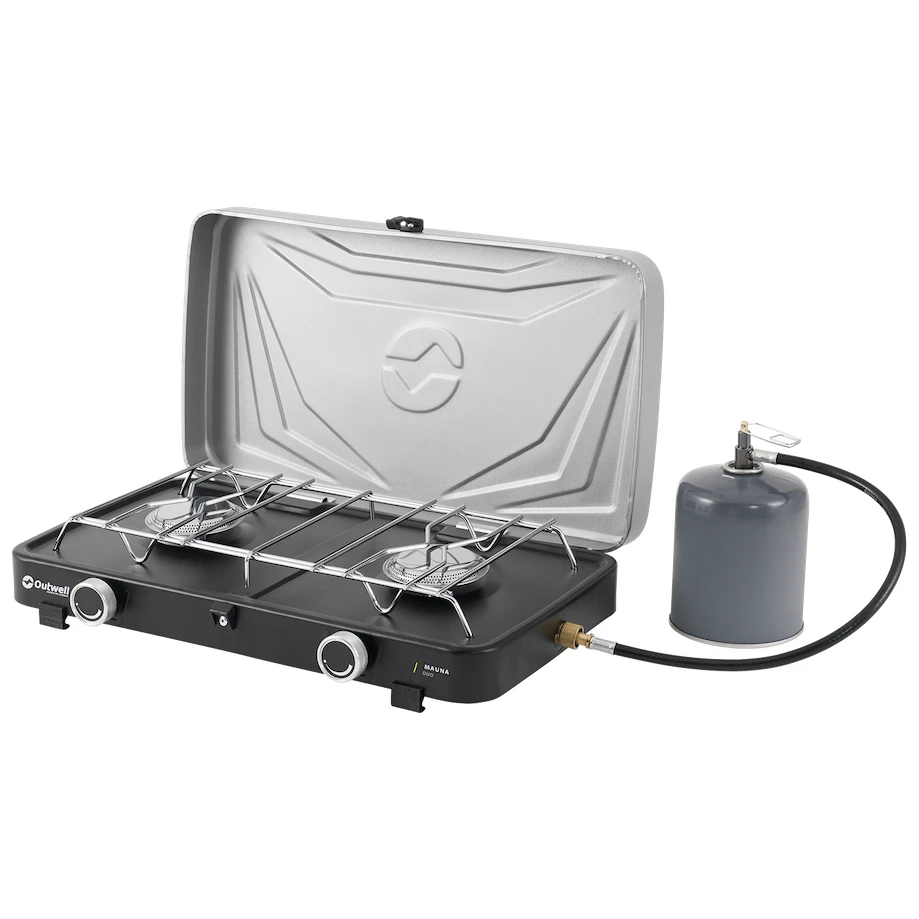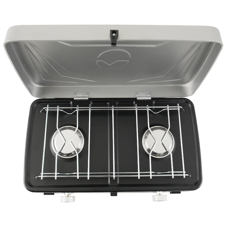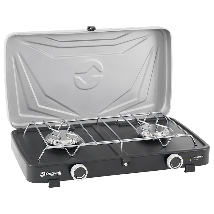 Fornello a gas a due fuochi Mauna Duo del produttore danese Outwell è un aiuto indispensabile per il campeggio e per il giardino. Il materiale in acciaio e acciaio inossidabile garantisce una lunga durata. La costruzione è bassa, molto stabile, con piedini in plastica e i bruciatori sono dotati di una ampia griglia per un posizionamento sicuro della pentola. Il fornello ha un coperchio robusto, che ti permette di riporlo facilmente in una valigetta, rendendolo facile da trasportare.
