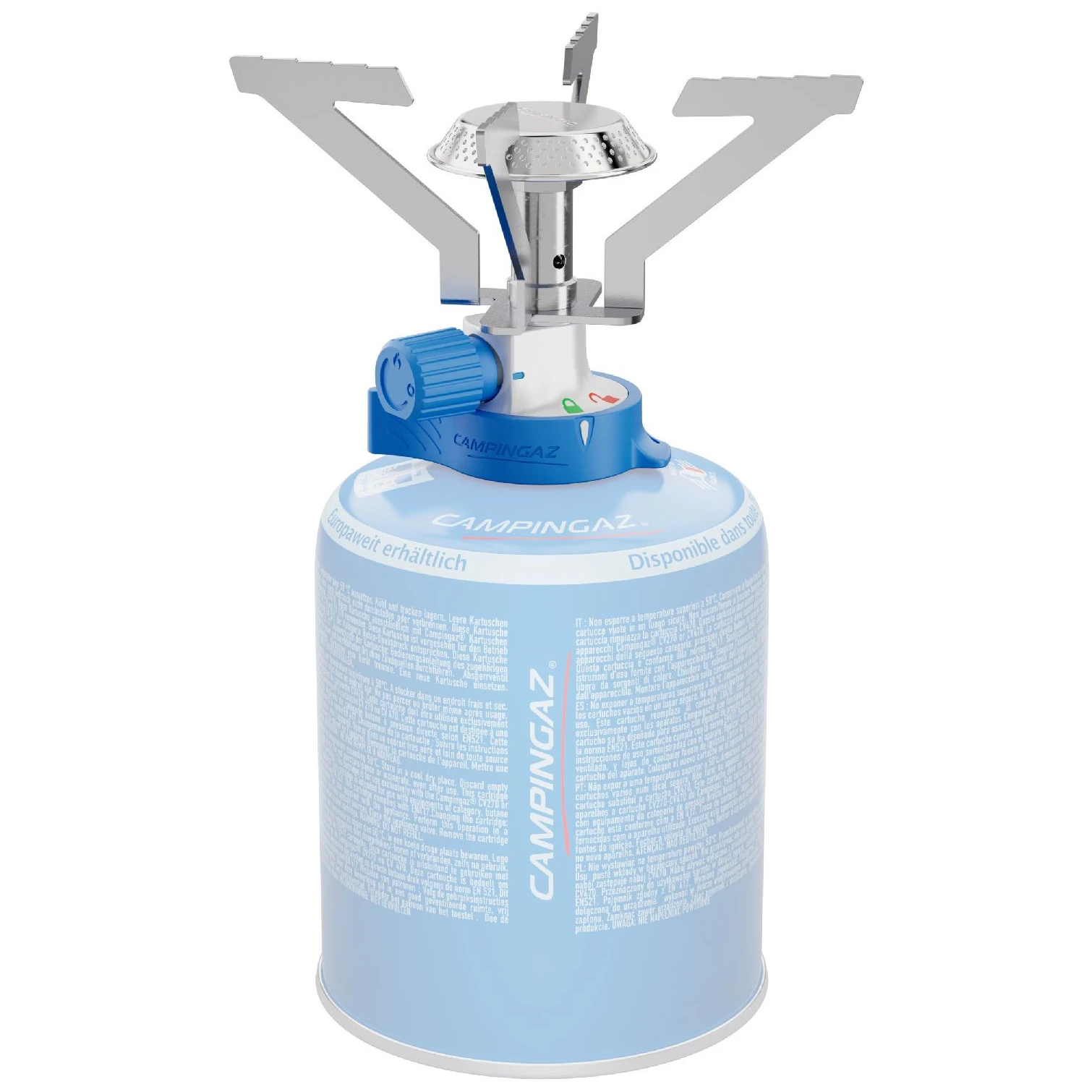 Il fornello offre una potenza di 1.250 W, grazie alla quale l'acqua bolle in circa 5 minuti e 23 secondi. Quattro robusti bracci di supporto offrono un appoggio stabile per le pentole e il peso ridotto di 200 g sarà apprezzato soprattutto durante le escursioni più lunghe. Il tempo di funzionamento con una cartuccia CV 300 raggiunge fino a 2 ore e 40 minuti, con una cartuccia CV 470 fino a 5 ore.