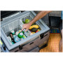 Il frigorifero a compressore Goal Zero Alta 50 può essere impostato fino a -20°C, quindi può essere utilizzato sia come frigorifero che come congelatore. Con un volume di 53 l, può contenere fino a 75 lattine da 350 ml. È realizzata in acciaio inossidabile e dispone di due vassoi rimovibili.