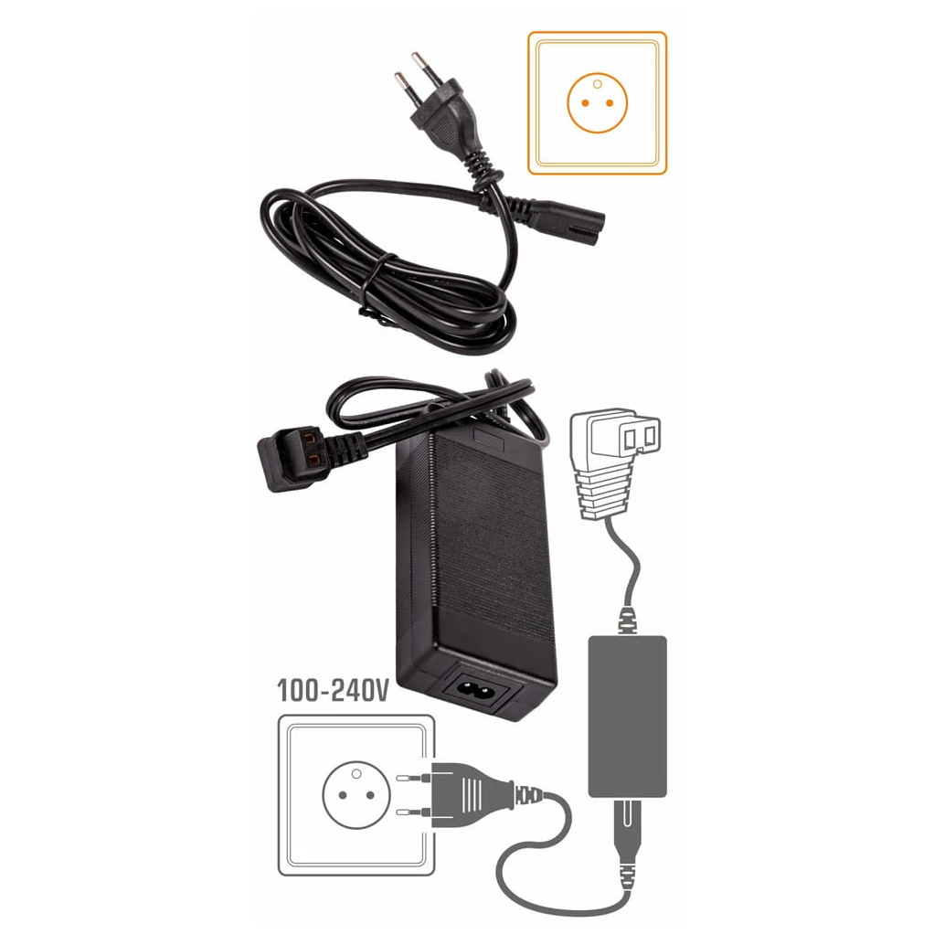 Il frigorifero portatile può essere alimentato classicamente dalla presa di corrente, tramite l'accendisigari dell'auto o tramite una batteria (modulare o esterna) o un pannello fotovoltaico Yolco. Tutti i cavi necessari per l'alimentazione di base sono inclusi nella confezione, gli altri componenti possono essere acquistati in base alle esigenze.