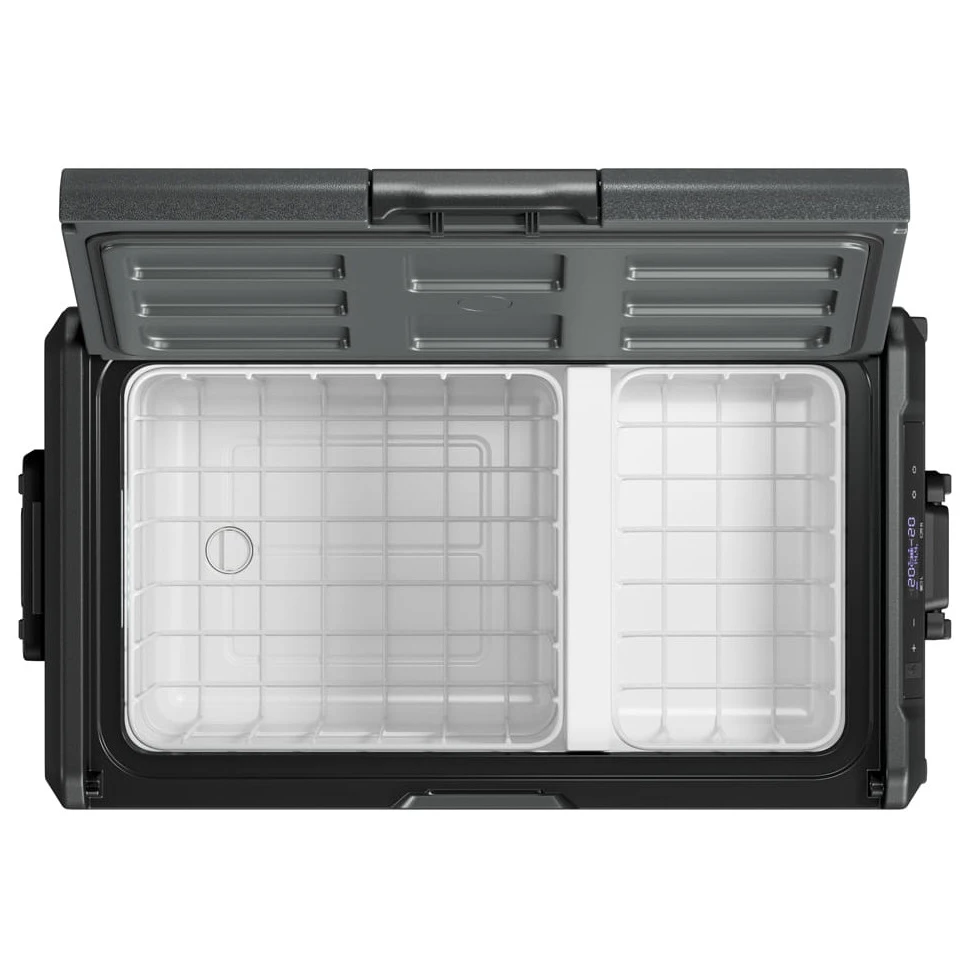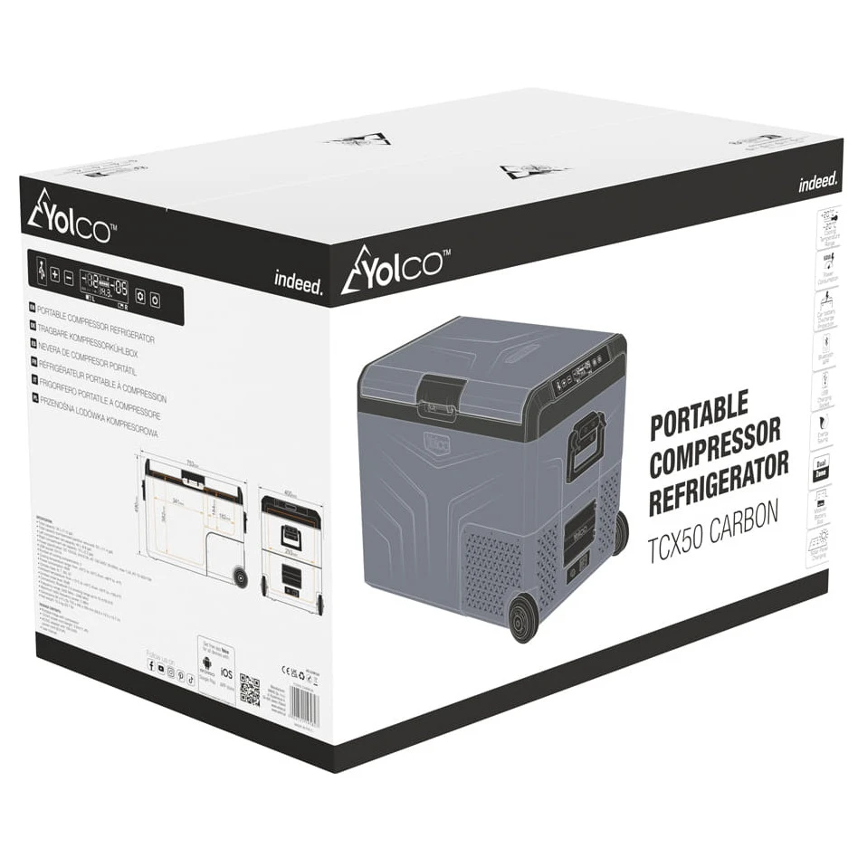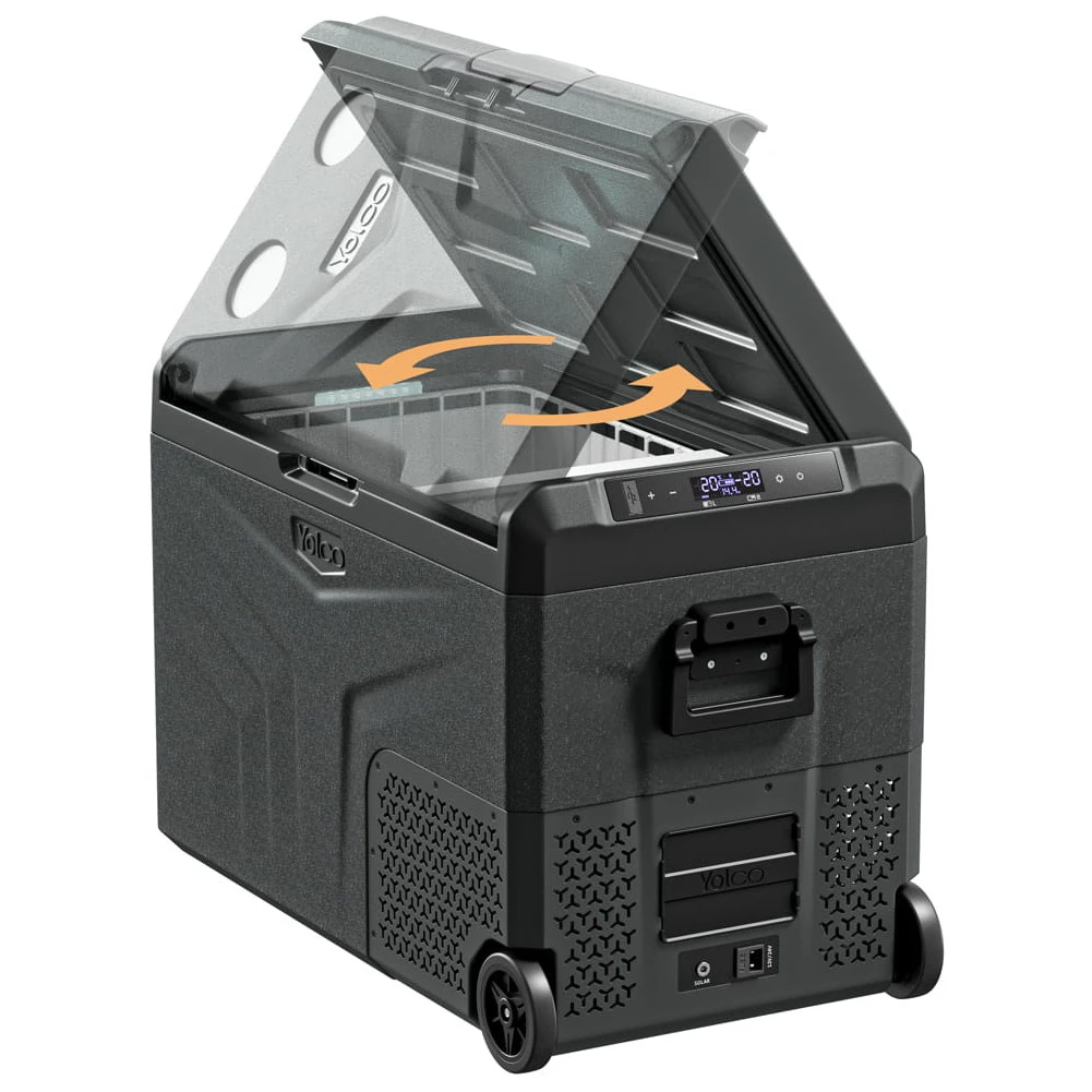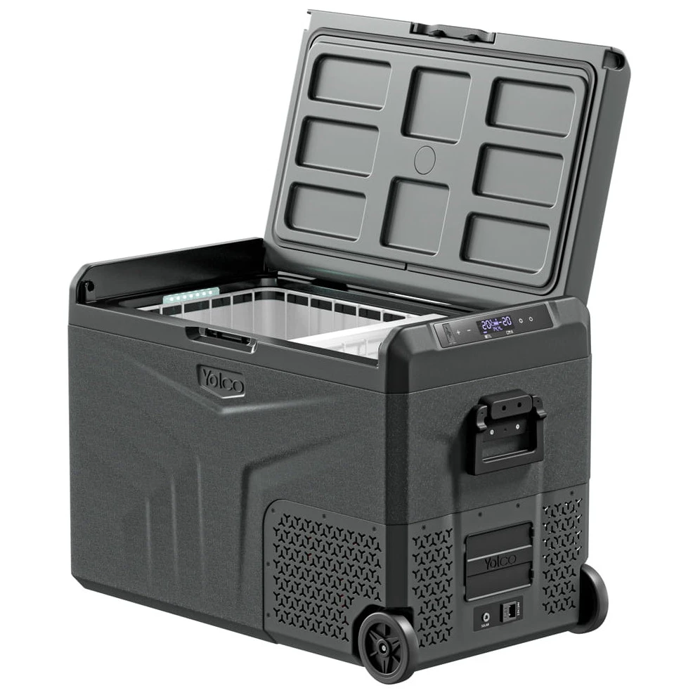 Yolco TCX50 è un potente frigorifero portatile a compressore con una capacità fino a 52 litri. Offre due scomparti separati con temperatura regolabile individualmente, consentendo di raffreddare e congelare contemporaneamente gli alimenti in base alle proprie esigenze. Inoltre, il divisorio rimovibile consente di adattare facilmente lo spazio interno.