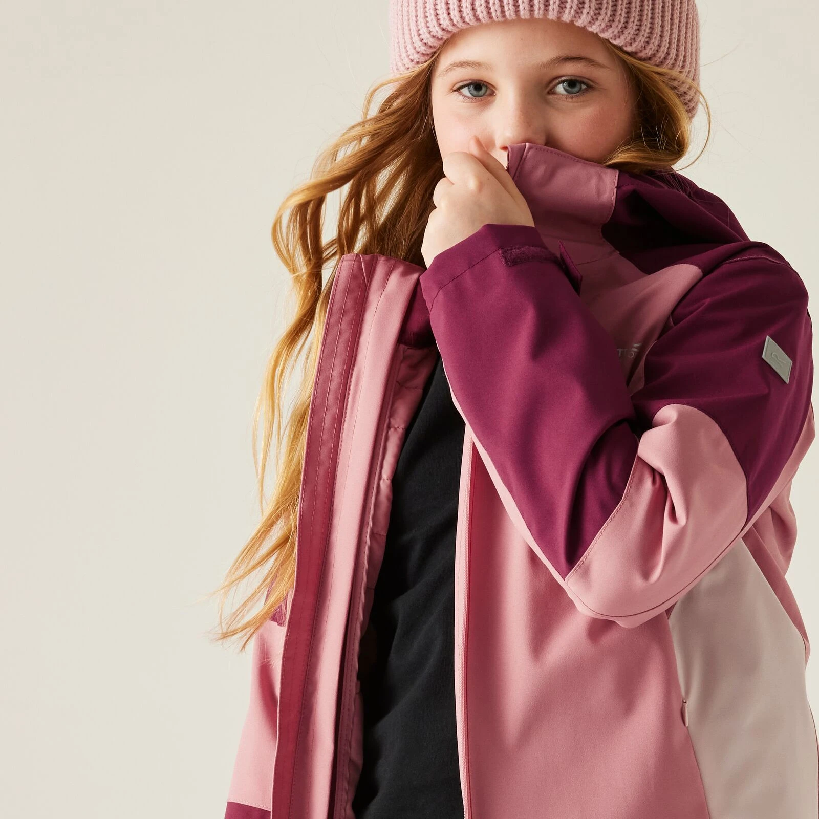 La giacca da bambina Girls Trekktain 3 in 1 II di Regatta è realizzata in tessuto Isotex 15000 impermeabile e traspirante con cuciture nastrate, che manterranno le piccole esploratrici asciutte e comode. Il design 3 in 1 include una leggera parte interna imbottita con pannelli Extol Stretch. I bordi riflettenti, la torcia Brite Light e diverse tasche garantiscono visibilità e praticità per le escursioni o il gioco.