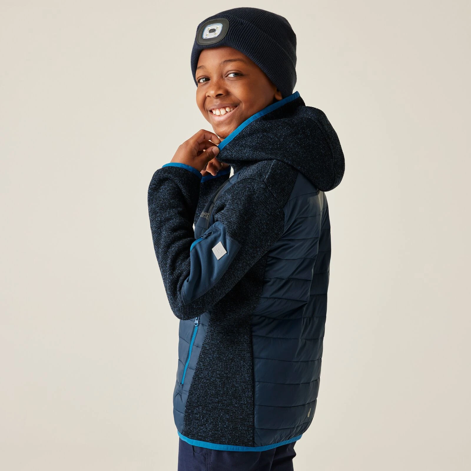 La giacca per bambini Regatta Junior Newhill Hybrid offre una combinazione di parte imbottita leggera e maniche elastiche con cappuccio, garantendo calore, comfort e libertà di movimento. Il corpo della giacca è dotato di un trattamento idrorepellente DWR, che protegge dalla pioggia leggera, e l'isolamento da 120 g/m² mantiene il calore in modo affidabile.