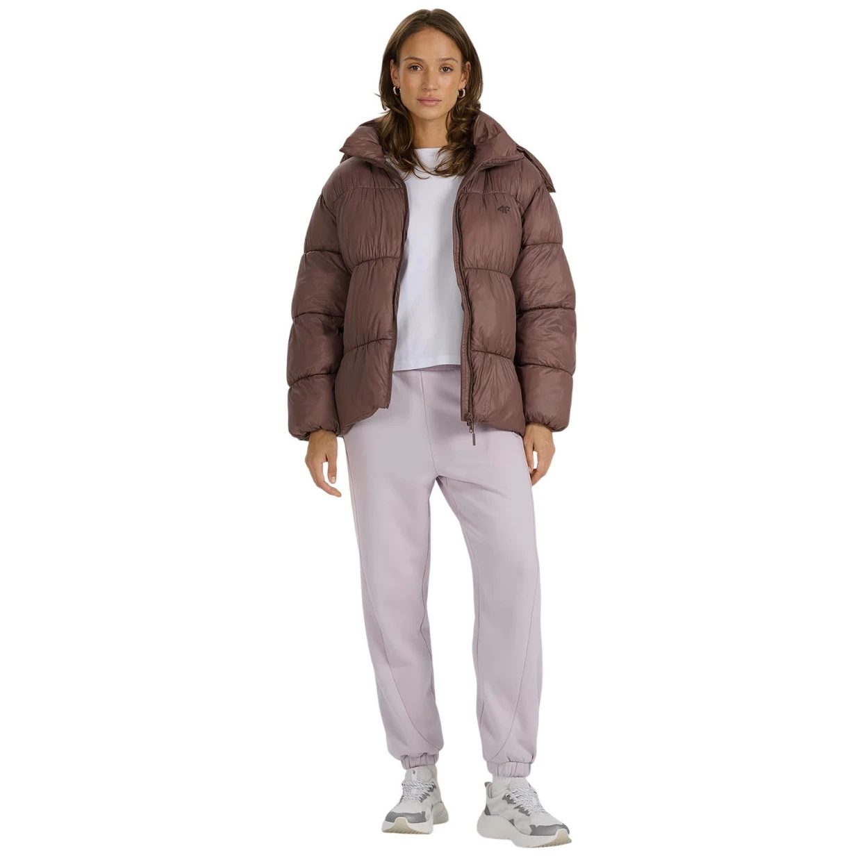 La giacca da donna Down Jacket F585 di 4F è la scelta ideale per l'inverno, poiché combina un moderno taglio oversize, un isolamento termico affidabile e dettagli funzionali per il comfort quotidiano. Grazie all'imbottitura in piuma sintetica, offre calore anche in ambienti umidi ed è facile da mantenere. L'impregnazione idrofobica DWR limita l'assorbimento di umidità del materiale, quindi la pioggia leggera e l'umidità non sono un problema.