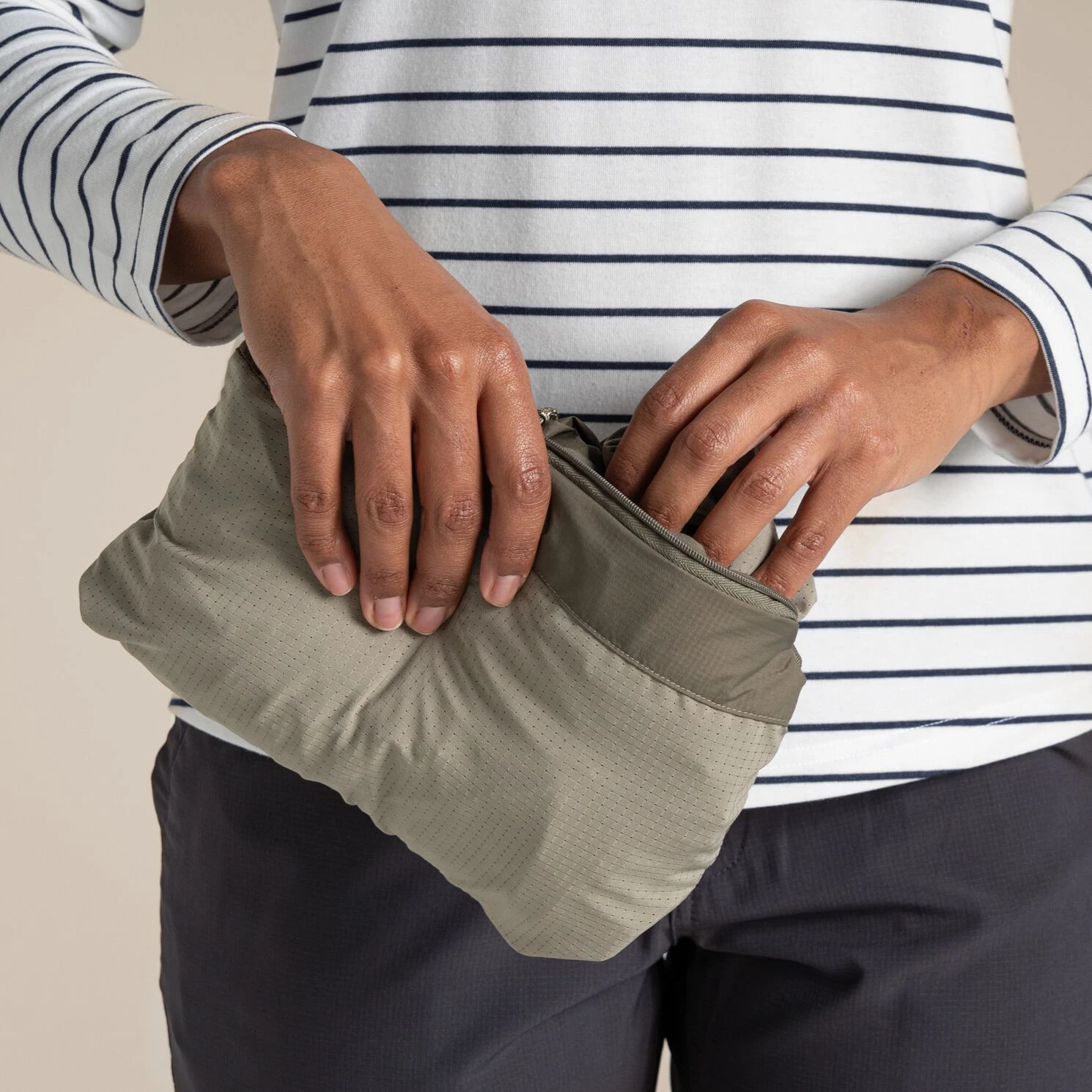 La Craghoppers NosiLife Rosa Reversible Jacket è una giacca da donna ultraleggera progettata per viaggiare in ambienti caldi e umidi. È reversibile e offre due lati funzionali in uno: uno strato protettivo a triplo ripstop contro vento, pioggia e macchie d'acqua e una rete interna con tecnologia NosiLife, che respinge gli insetti e neutralizza gli odori.