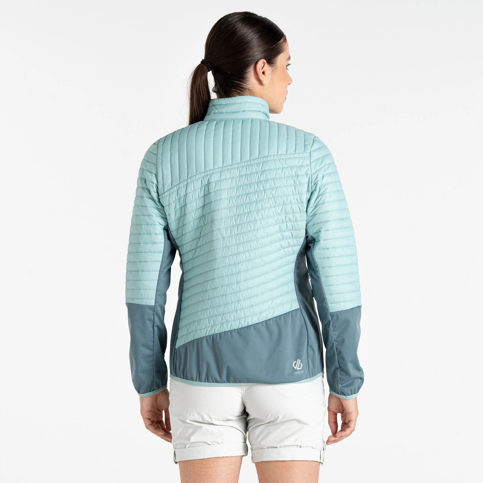 La giacca ibrida da donna Dare 2b Lexan II Hybrid è realizzata in materiale tecnico iLUS Windproof e tessuto riciclato Ared 15/15. Grazie a questo, è una protezione perfetta contro vento e acqua, ma rimane traspirante. Inoltre, il materiale è elastico, quindi non limita in alcun modo la naturale libertà di movimento. Al centro dei pannelli anteriore e posteriore si trova l'imbottitura Iloft, che riscalda in modo affidabile ed è facilmente comprimibile.
