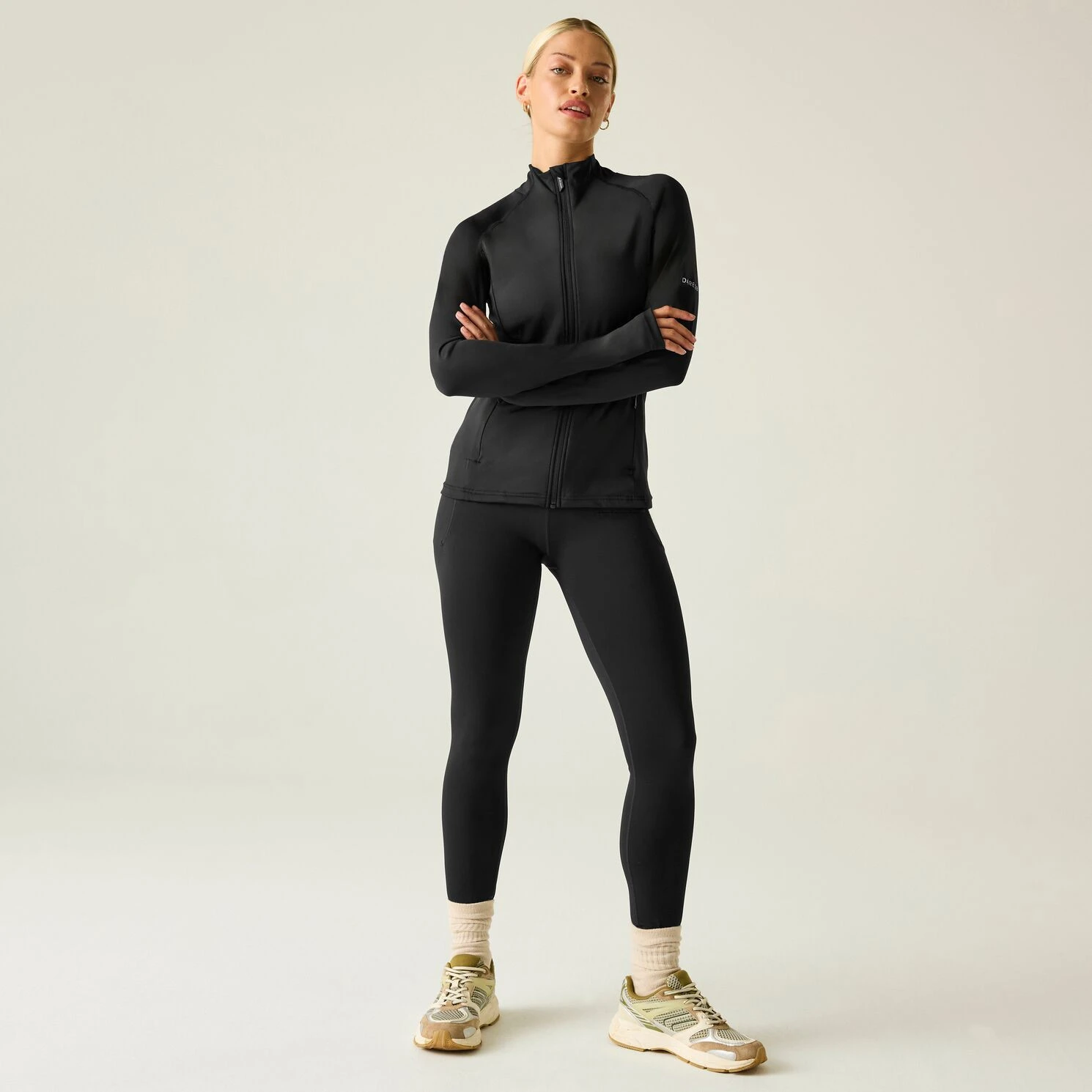 Dettagli pratici come la zip intera, i passanti per i pollici e due tasche con zip aumentano la funzionalità e il comfort. Le cuciture verticali sagomate sottolineano inoltre la figura e contribuiscono a una vestibilità lusinghiera e ben aderente, facendoti sentire sicura in ogni attività.