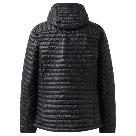 Il materiale esterno Pertex Quantum è resistente al vento e all'umidità e allo stesso tempo mantiene una leggerezza eccezionale. L'imbottitura isolante Mimic Platinum con aggiunta di grafene imita le proprietà della piuma naturale, ma a differenza di questa rimane calda anche in ambienti umidi. La costruzione a camere con mappatura in base alle zone del corpo garantisce un equilibrio ideale tra calore e traspirabilità.