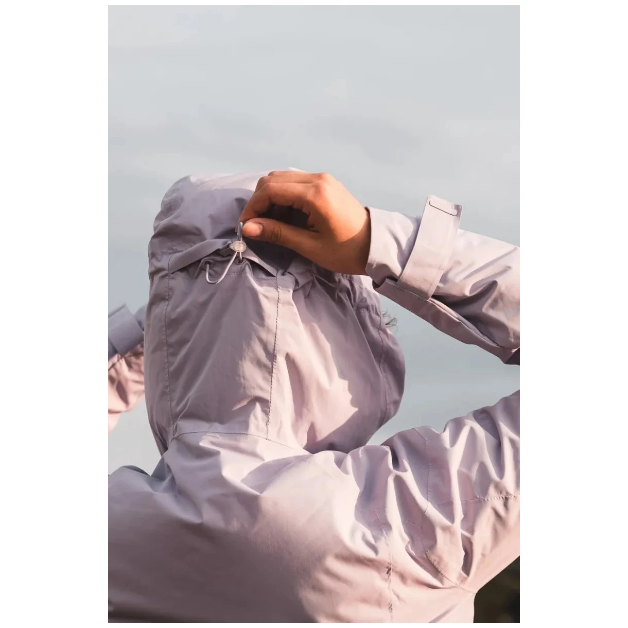 La pratica lavorazione è completata da cuciture completamente nastrate, cerniera principale impermeabile e trattamento idrorepellente DWR, grazie al quale l'acqua scorre sulla superficie del materiale.
