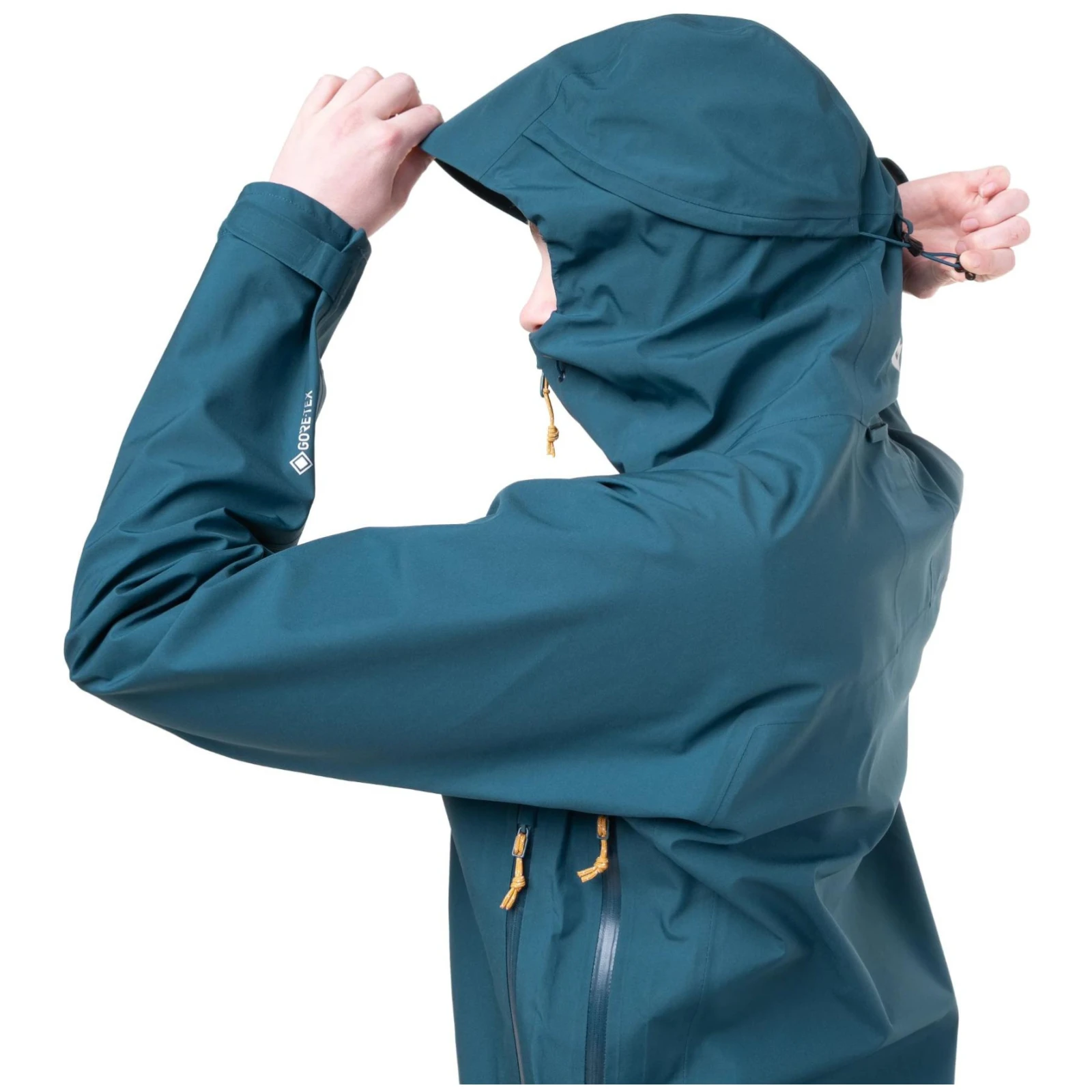 La giacca da donna Mountain Equipment Saltoro, estremamente leggera e affidabile, è progettata per essere indossata tutto il giorno in qualsiasi condizione atmosferica. Grazie alla costruzione a tre strati con Gore-Tex® ePE e trattamento idrorepellente a lunga durata (DWR), vi proteggerà efficacemente da pioggia, vento e neve. Il tessuto superiore aumenta la resistenza all'usura meccanica, ad esempio quando si indossa uno zaino. I materiali utilizzati garantiscono una giacca leggera, altamente traspirante, confortevole e resistente.