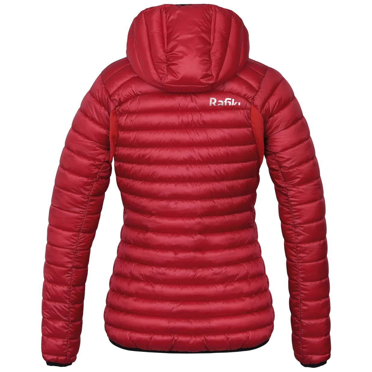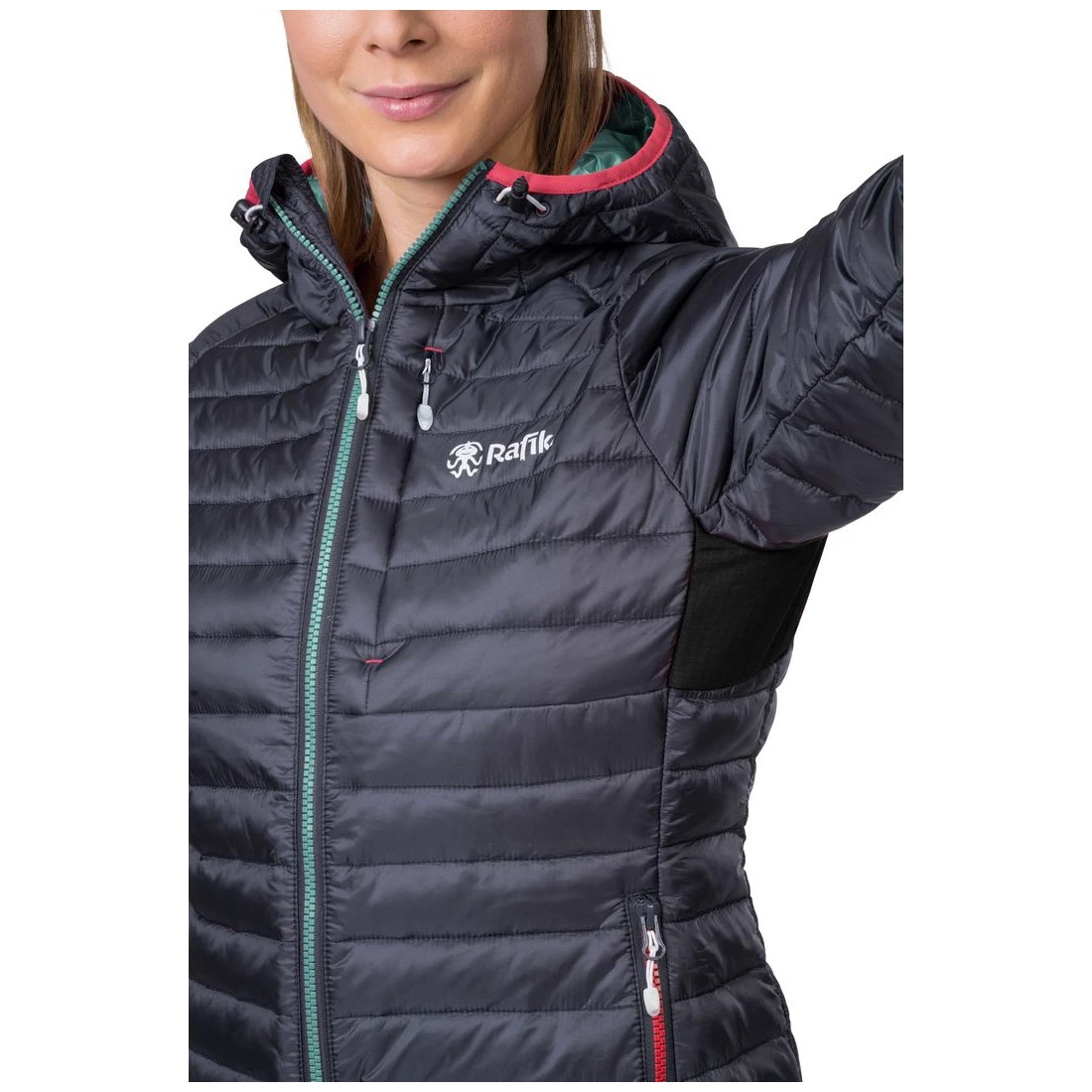 La giacca imbottita da donna Rafiki Darcy sarà apprezzata da tutte le arrampicatrici grazie alle sue numerose caratteristiche. Il materiale isolante è Sorona di DuPont, che non solo ha eccellenti proprietà termiche, ma è anche ecologico. Gli scalatori apprezzeranno la cerniera bidirezionale, i soffietti elasticizzati sotto le ascelle o le tasche in rete che possono ospitare le scarpe da arrampicata.