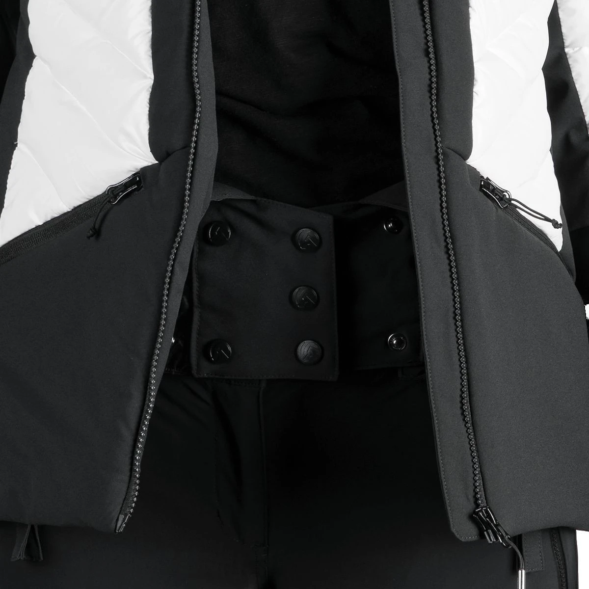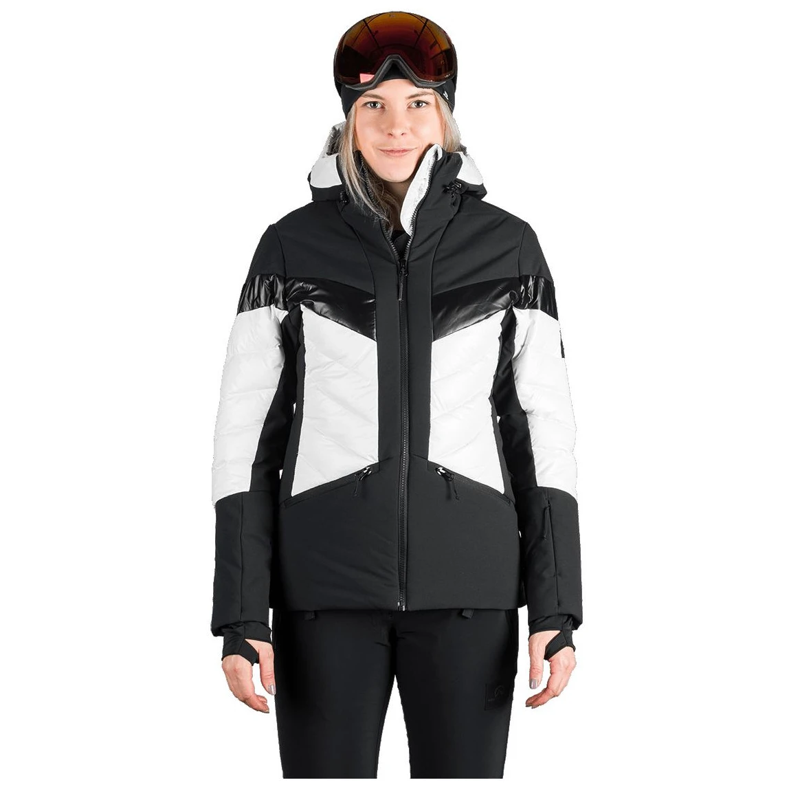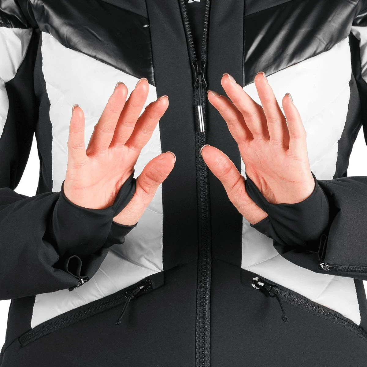 Il comfort termico è garantito da un'imbottitura di qualità, dalla ghetta antineve e dalla patta interna antivento sotto la zip. Per il massimo comfort, la giacca ha maniche preformate con polsini elastici in lycra che proteggono dalla penetrazione del freddo. Tasche pratiche – due laterali con zip, una tasca per lo skipass sulla manica, una tasca interna sul petto e una tasca per gli occhiali – offrono spazio sufficiente per tutto il necessario. La giacca Abigale è la combinazione perfetta di stile, funzionalità e comfort per le giornate invernali.