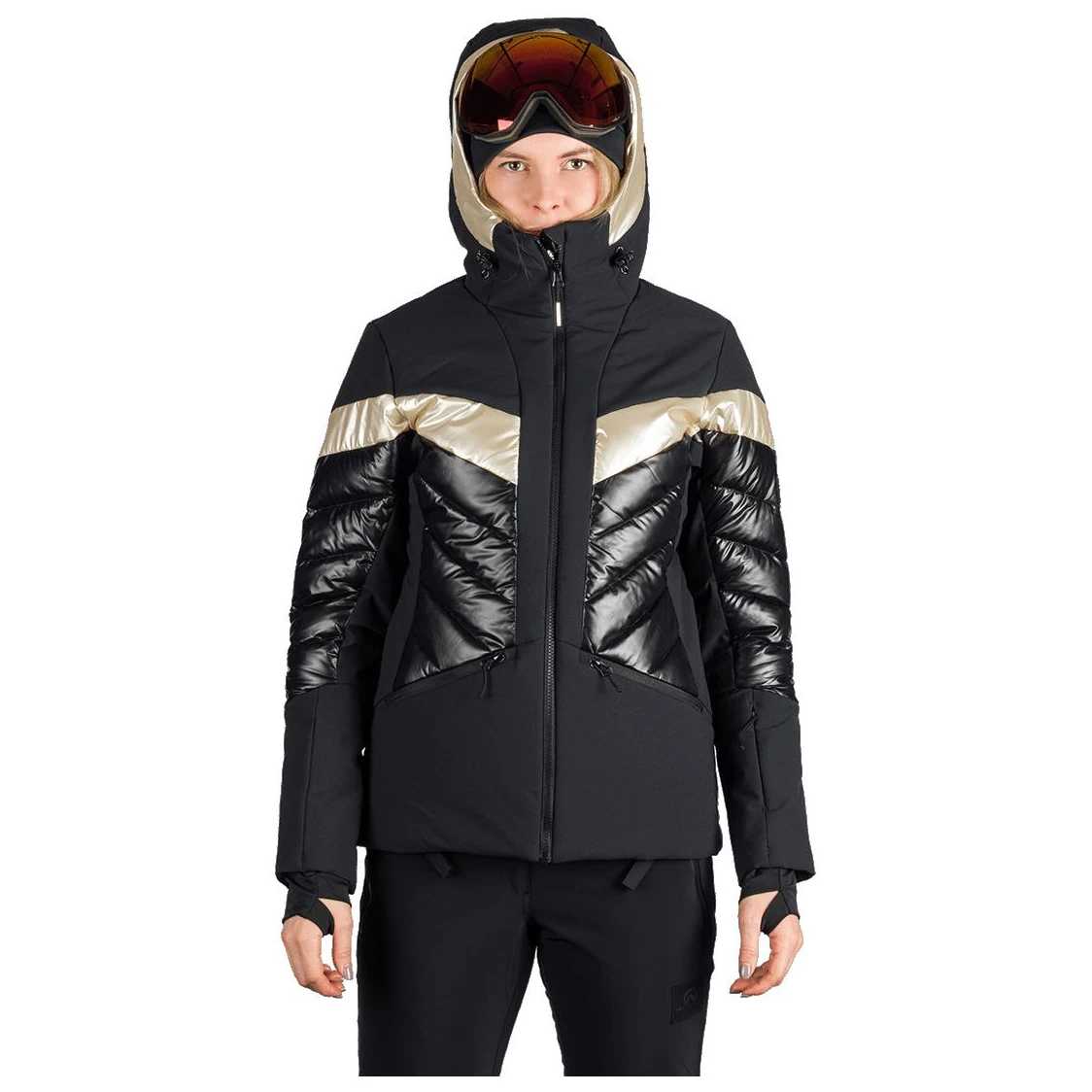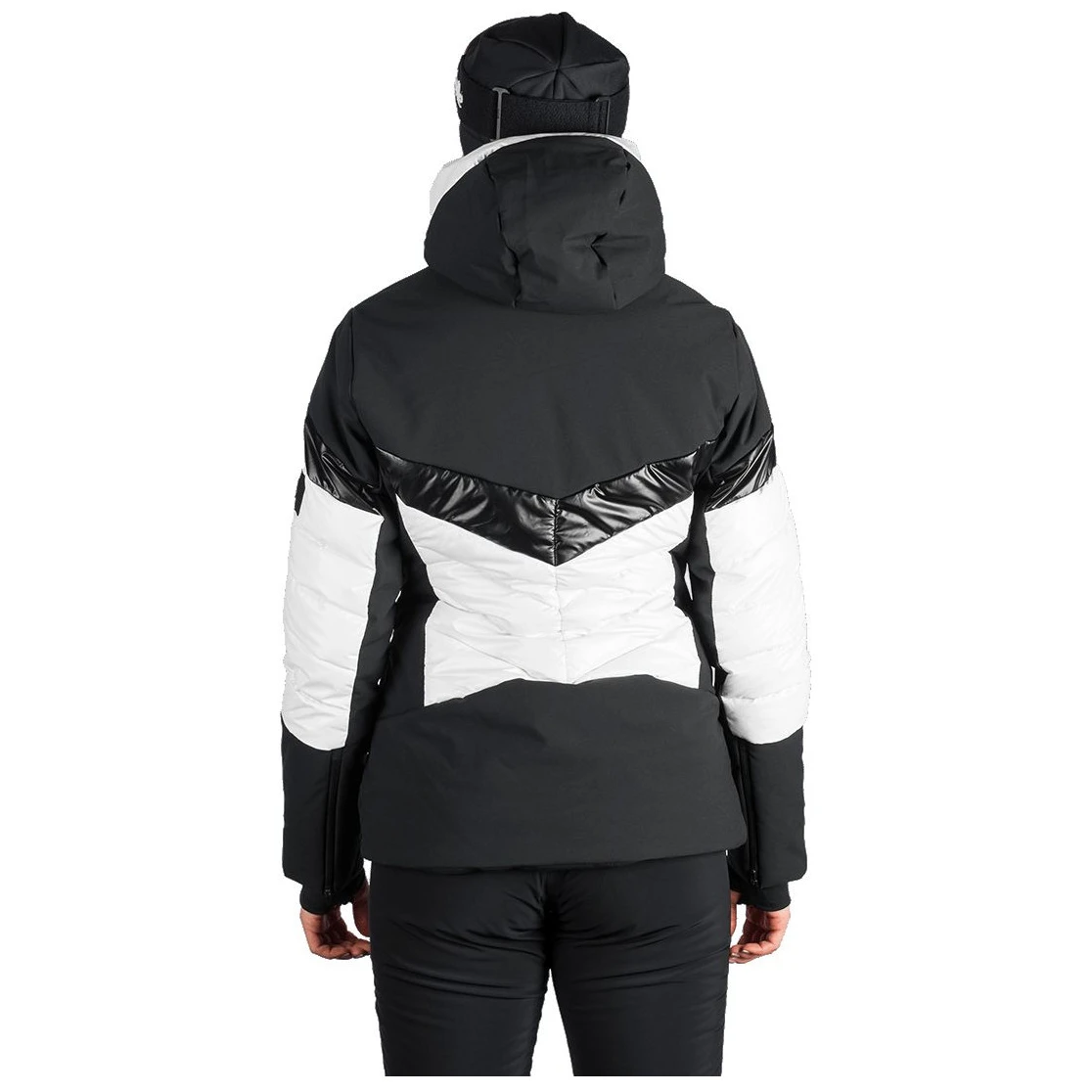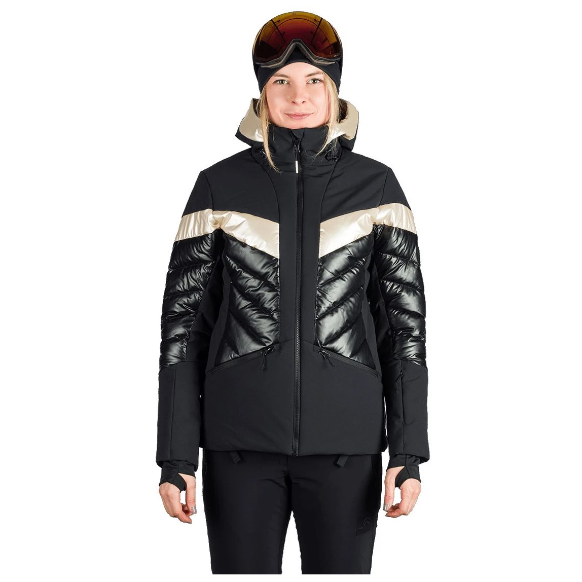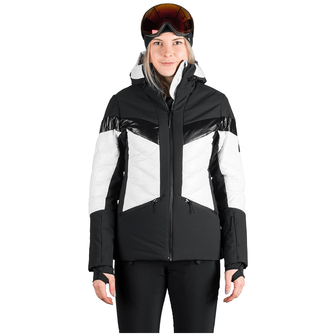 Il comfort termico è garantito da un'imbottitura di qualità, dalla ghetta antineve e dalla patta interna antivento sotto la zip. Per il massimo comfort, la giacca ha maniche preformate con polsini elastici in lycra che proteggono dalla penetrazione del freddo. Tasche pratiche – due laterali con zip, una tasca per lo skipass sulla manica, una tasca interna sul petto e una tasca per gli occhiali – offrono spazio sufficiente per tutto il necessario. La giacca Abigale è la combinazione perfetta di stile, funzionalità e comfort per le giornate invernali.