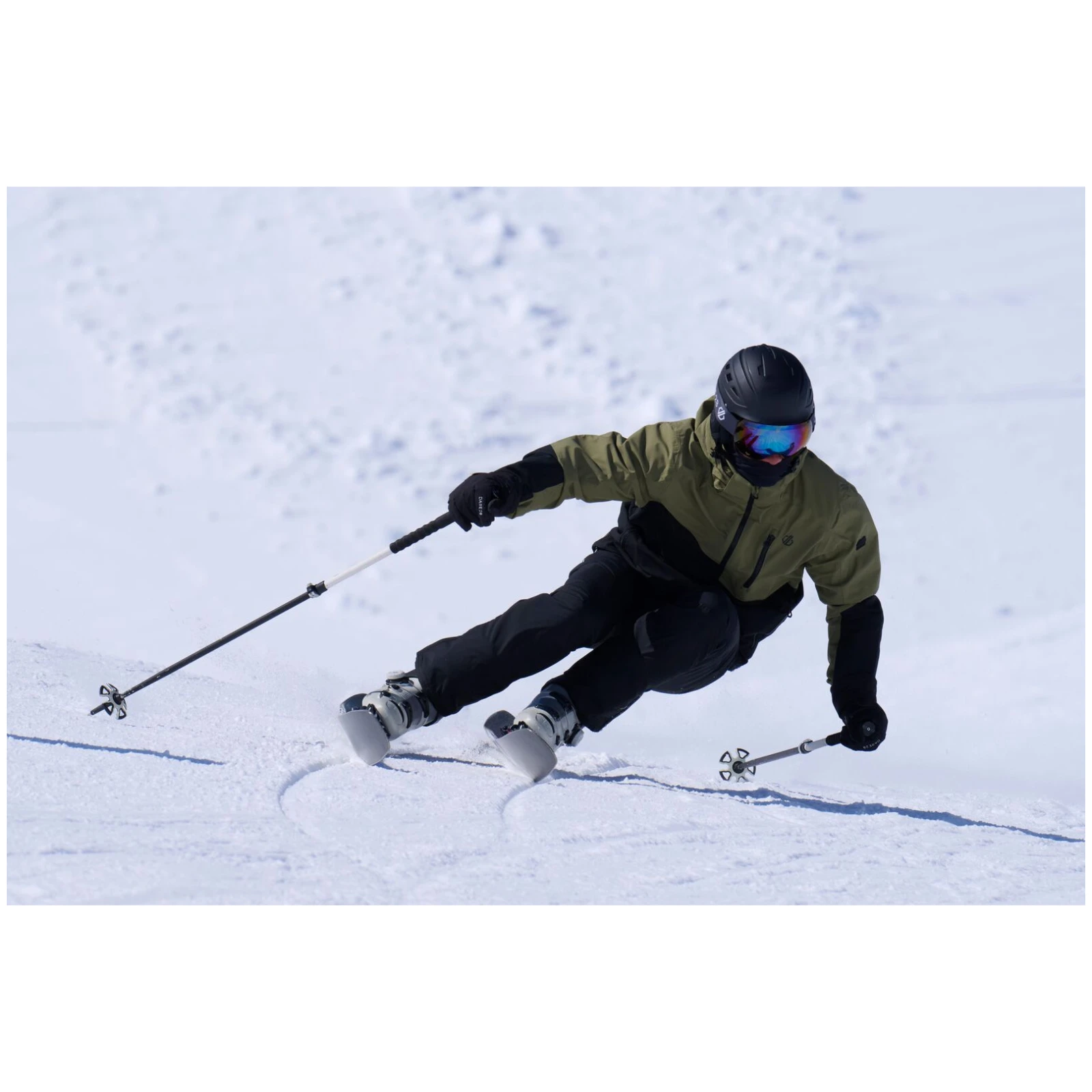 La giacca combina pannelli resistenti all'abrasione, cuciture completamente nastrate, un cappuccio con taglio tecnico, elementi regolabili e visiera rinforzata insieme a dettagli da sci come il paraneve, la tasca per skipass, il panno per occhiali, i passanti per il pollice, che ogni amante dello sci o dello snowboard apprezzerà.