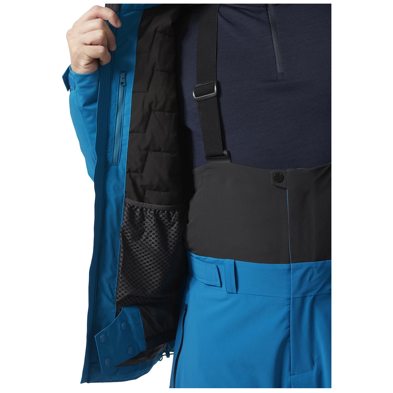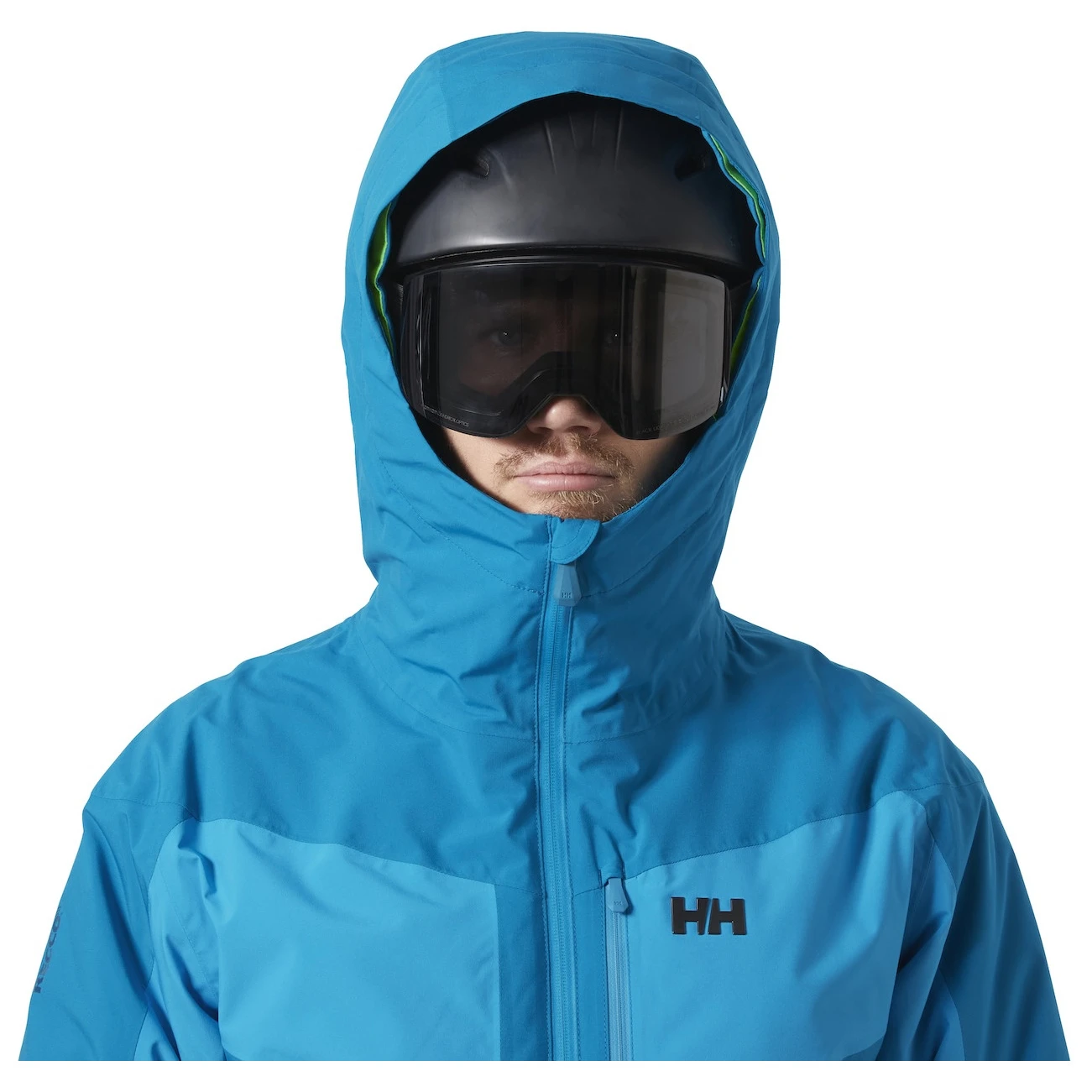 Il taglio presenta maniche e gomiti articolati per una libertà di movimento illimitata. Il cappuccio regolabile con visiera è compatibile con il casco. Per un maggiore comfort, la giacca è dotata di zip di ventilazione sotto le ascelle, ghetta antineve regolabile, polsini regolabili con chiusura, zip integrale con protezione per il mento in pile e patta interna e occhiello interno per appenderla. L'attrezzatura può essere comodamente riposta in due tasche laterali con zip, una tasca sul petto con zip e tasche interne, oltre a una tasca per lo skipass e una tasca per gli occhiali sul petto con panno per la pulizia all'interno.