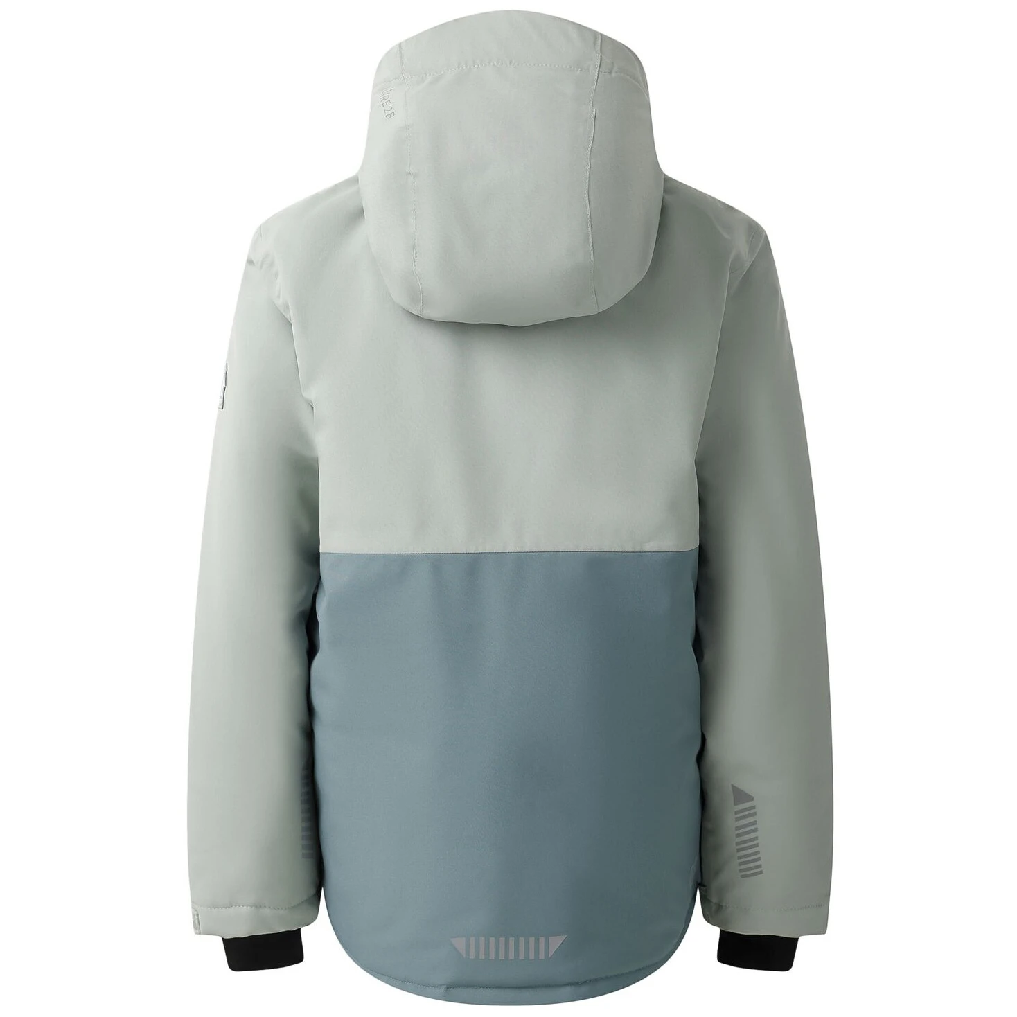L'imbottitura calda in poliestere riciclato e la fodera sulla schiena mantengono il calore corporeo anche nelle giornate fredde. Le cuciture nastrate impediscono all'umidità di penetrare e l'attrezzatura da sci completa – tra cui la ghetta antineve integrata, la tasca per lo skipass e la tasca per gli occhiali con panno – rendono la giacca la scelta ideale per i piccoli sciatori.