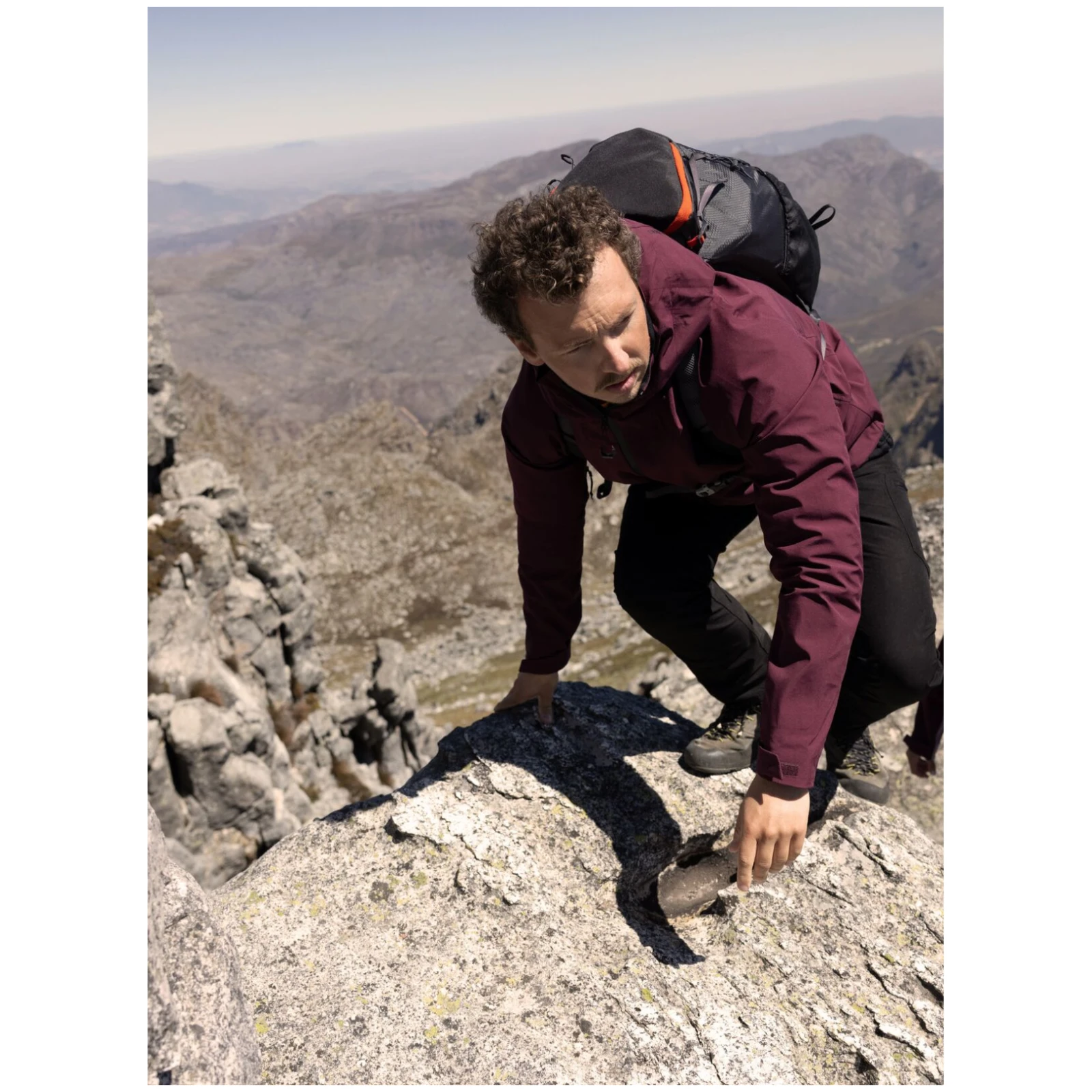 Grazie alle cuciture completamente nastrate, alle cerniere idrorepellenti e al resistente trattamento idrorepellente senza PFC, la giacca offre una completa impermeabilità e un'eccellente traspirabilità anche durante l'attività sportiva intensa. Il cappuccio compatibile con il casco e le cerniere di ventilazione sotto le ascelle aumentano la funzionalità in condizioni meteorologiche variabili, mentre il cappuccio tecnico con visiera metallica e regolazione garantisce protezione anche in condizioni di montagna difficili.
