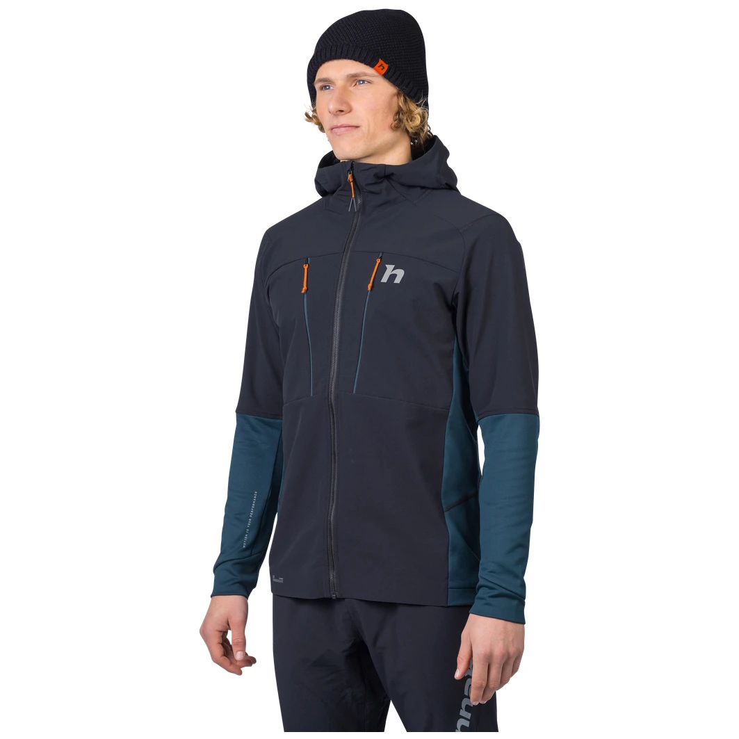 La costruzione ibrida della giacca Hannah Trane Hoody combina i materiali AFT Double Weave Thermo e Polarstretch Pro. La parte anteriore del busto, le spalle, il cappuccio e parte della schiena sono realizzati in materiale AFT Double Weave Thermo meccanicamente resistente, antivento, idrorepellente a lunga durata e traspirante, che è dotato di un morbido materiale spazzolato all'interno per migliorare le proprietà di isolamento termico.