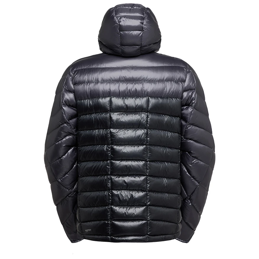 La giacca è realizzata in Pertex® Quantum, un materiale esterno collaudato che si distingue per l'eccezionale rapporto tra leggerezza, resistenza e traspirabilità. Allo stesso tempo, è antivento e parzialmente resistente all'acqua. L'imbottitura isolante è composta da piuma d'oca italiana con un fill power di 1000 cuin (124 g), che rappresenta l'isolamento più caldo e comprimibile attualmente disponibile e costituisce circa la metà del peso totale della giacca.