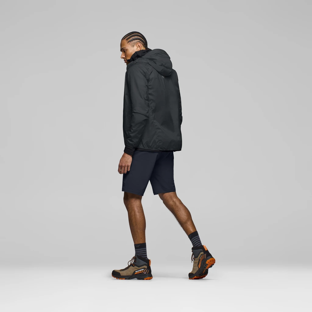 Durante i movimenti rapidi, i pannelli in rete sotto le ascelle aiutano la ventilazione, allontanando il calore in eccesso. Il cappuccio è completamente regolabile e può essere comodamente ripiegato quando non è necessario. I polsini elasticizzati e l'orlo inferiore elasticizzato aiutano la giacca a vestire bene e a impedire l'ingresso del vento.