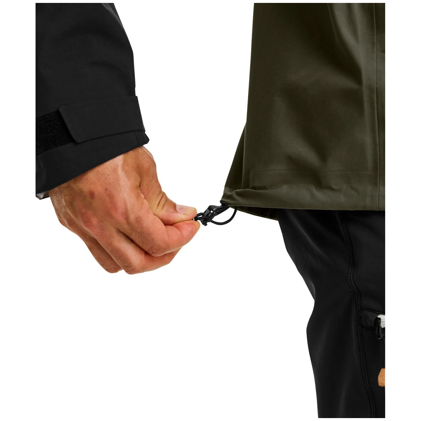 Dettagli tecnici come il cappuccio regolabile, le due tasche frontali ottimizzate per l'uso con lo zaino, la tasca interna, i polsini regolabili e l'orlo inferiore consentono adattabilità e comfort durante le impegnative uscite. Le soluzioni con zip nascoste e le giunture nastrate conferiscono alla giacca un aspetto elegante e pulito, mentre il taglio ergonomico favorisce la massima libertà di movimento, dalla valle alle cime delle montagne.