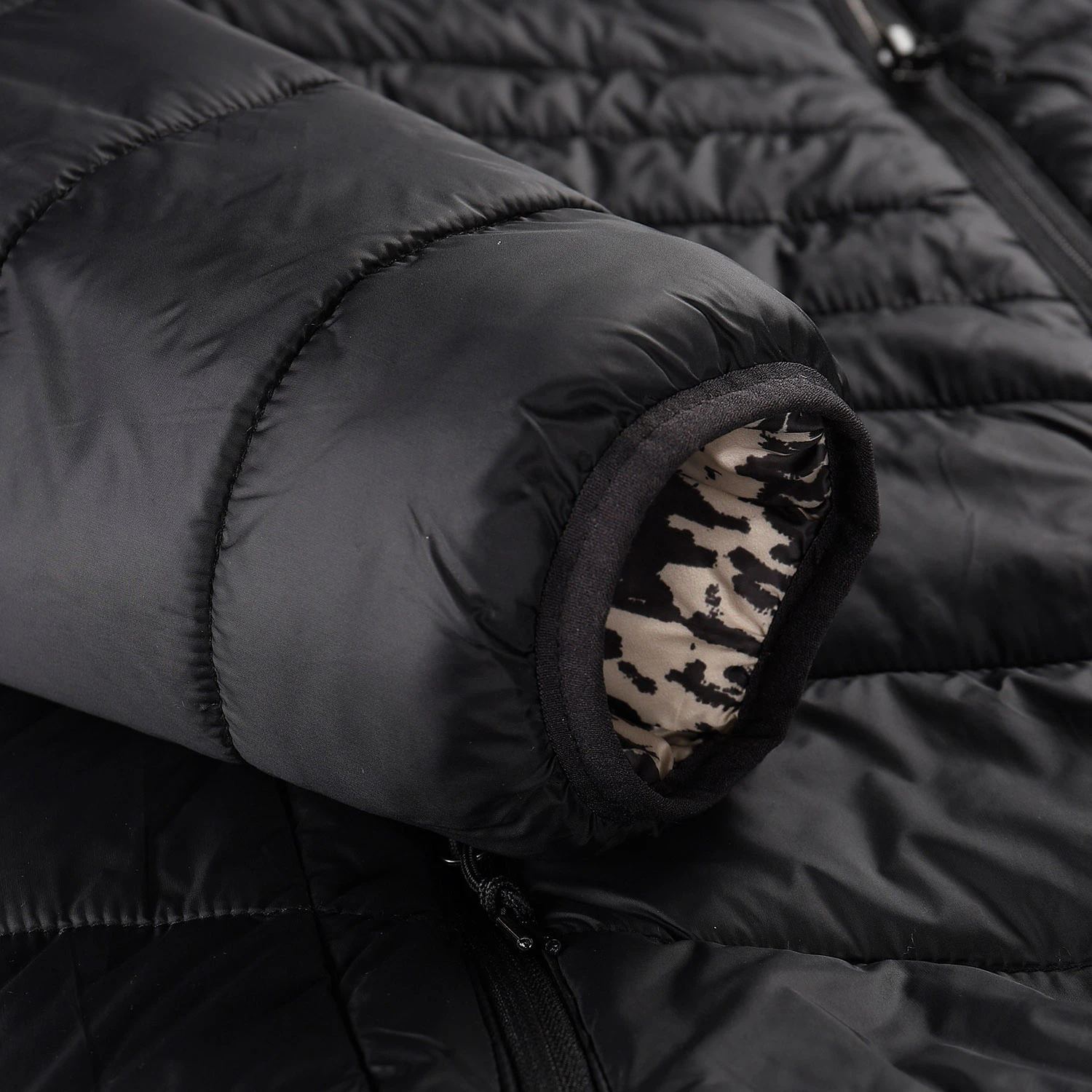 Per il massimo comfort, la giacca è dotata di cappuccio fisso, maniche e orlo inferiore rifiniti con elastico per evitare la dispersione del calore, quattro ampie tasche, tirazip allungati e protezione per il mento per un maggiore comfort.