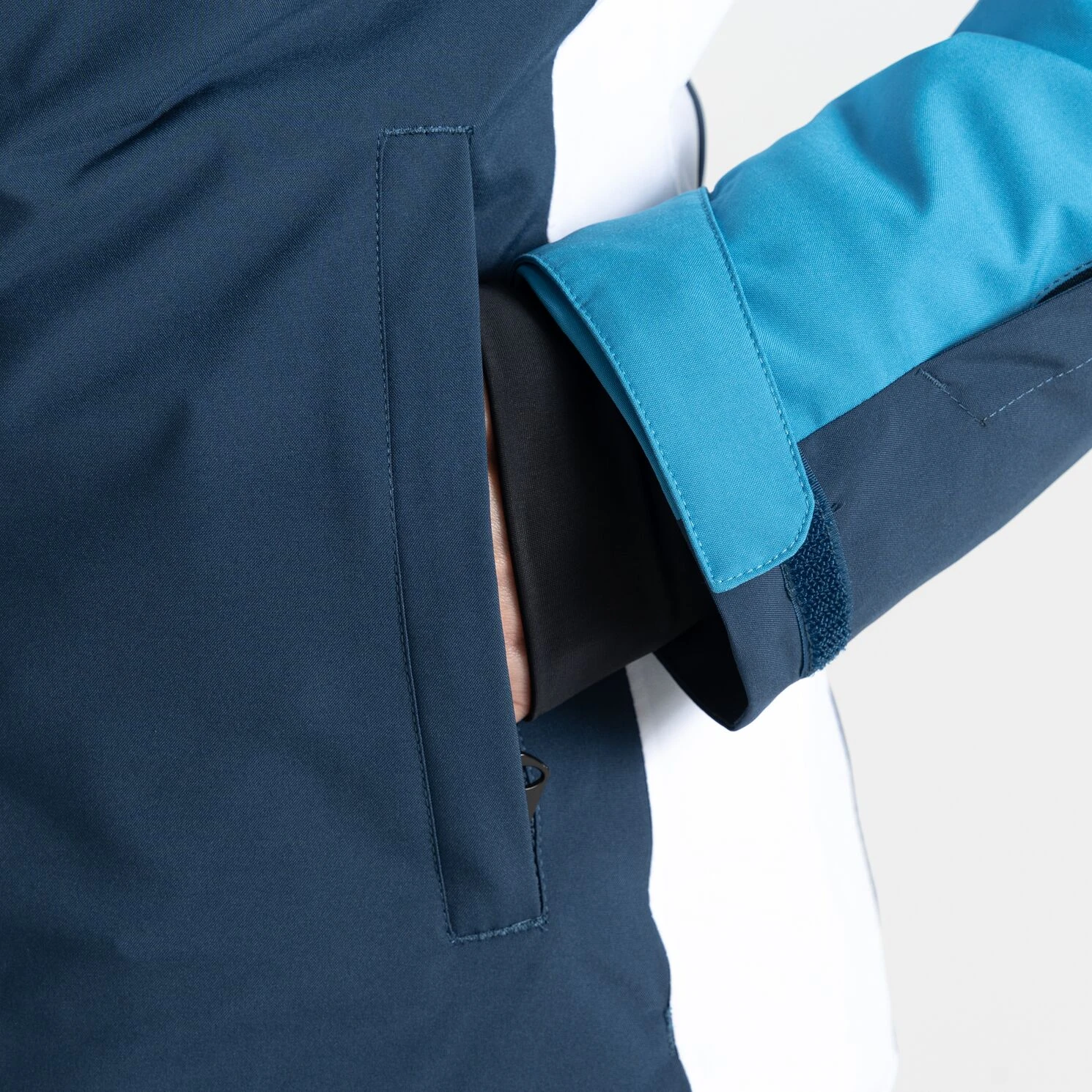 La giacca Chute da donna di Dare 2b offre una protezione perfetta sulle piste. La giacca è realizzata in tessuto ARED 20/30 impermeabile e altamente traspirante, con trattamento idrorepellente e cuciture nastrate. Il comfort termico è assicurato da un'imbottitura riciclata ad alto calore, da una fodera in poliestere riciclato strategicamente posizionata e da polsini interni a coste.