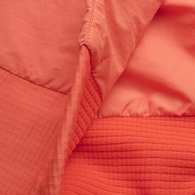 I pannelli laterali in pile riciclato Thermo Grid e il taglio anatomico offrono la massima libertà di movimento e comfort anche durante le attività dinamiche. Grazie al cappuccio a basso profilo, alle cuciture piatte e al design minimalista, la giacca è ideale come strato isolante leggero o come giacca a sé stante in condizioni più miti.