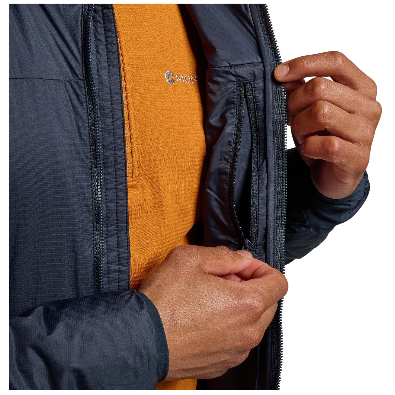 La giacca invernale da uomo Fortes Lite Hoodie del produttore Montane è progettata per il movimento attivo in montagna, dove apprezzerai la combinazione di leggerezza, resistenza ed eccellente traspirabilità. Il materiale esterno Barrier Tough in nylon riciclato 12D con trattamento DWR senza PFC/PFAS protegge dal vento e dalla leggera umidità, mentre la tecnologia interna APT (Air Permeable Technology) favorisce l'efficace lavoro dell'isolamento e aumenta il comfort durante il movimento.