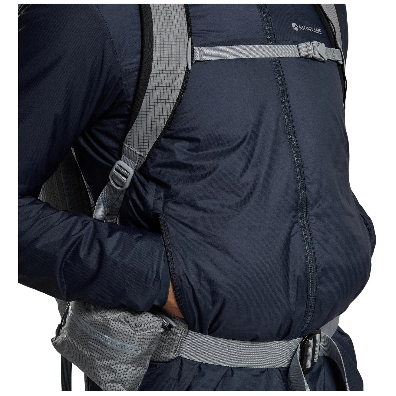 L'isolamento è fornito dall'eccellente isolamento PrimaLoft® Gold Active Vent – 60 g/m² nel corpo e 40 g/m² nelle maniche e nel cappuccio. Grazie all'elasticità a 4 vie, la giacca è flessibile, leggera e allo stesso tempo riscalda in modo affidabile anche quando è bagnata. La disposizione strategica dell'isolamento garantisce il massimo calore dove è più necessario e un volume inferiore nelle aree con carico maggiore.