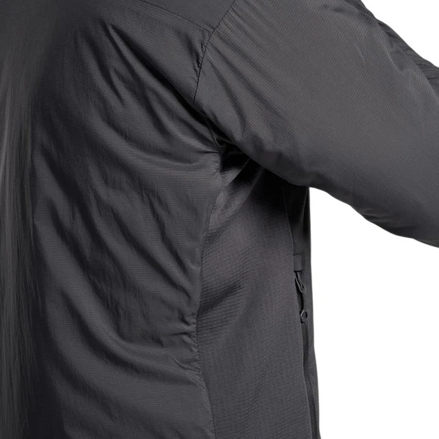 I pannelli laterali in pile riciclato Thermo Grid offrono flessibilità, eccellente traspirabilità e comfort durante il movimento. Grazie a questo, la giacca funziona come uno strato esterno leggero per le giornate asciutte o come strato intermedio sotto un hardshell.