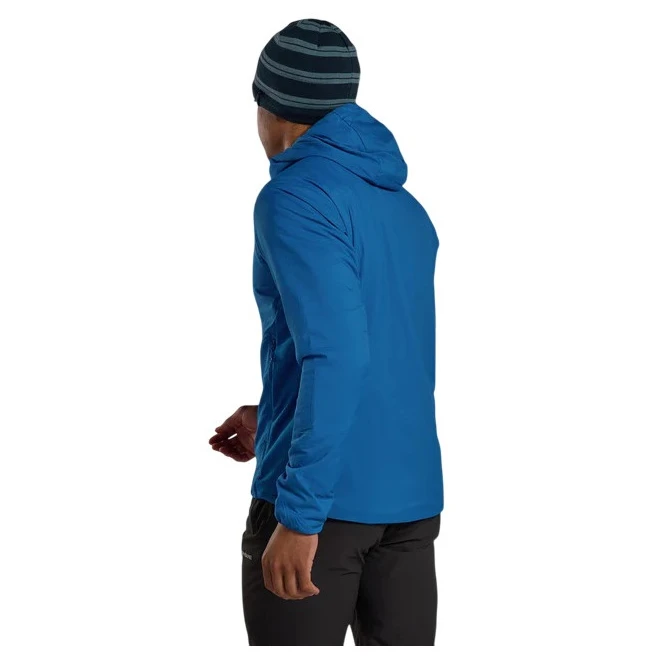 La giacca invernale da uomo Sirocco Hoodie di Montane è la scelta ideale per il movimento attivo in montagna e in città. Combina un materiale FEATHERLITE™ Air resistente e traspirante con un leggero isolamento PrimaLoft® Gold Active Vent con una grammatura di 60 g/m². Questo garantisce comfort termico, rapida rimozione dell'umidità e riscalda anche quando è bagnato.