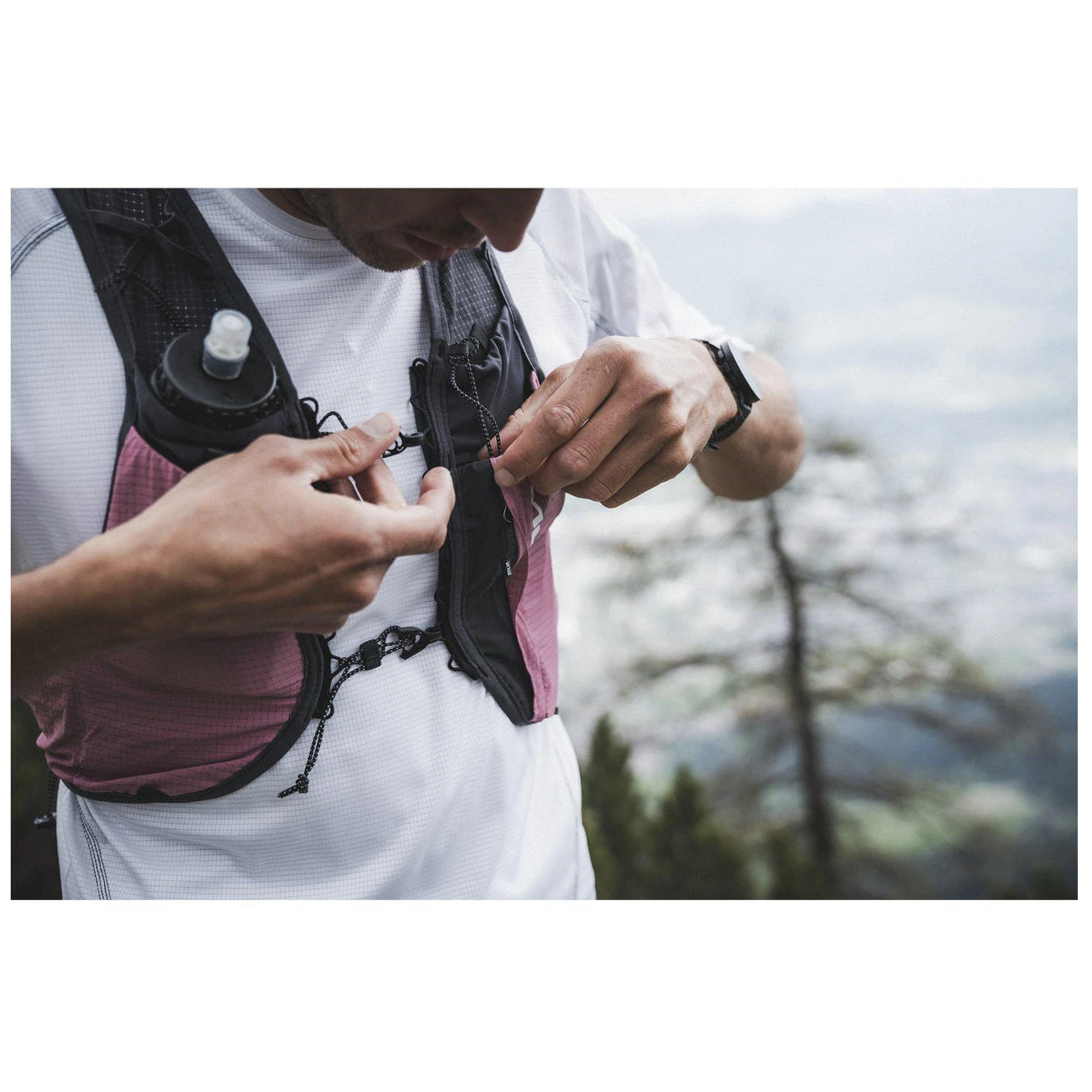 Il gilet da corsa Strive 5 di Silva è più leggero del 24% rispetto al precedente modello Strive Light 5, ha una vestibilità migliorata ed è realizzato in nylon ripstop leggero e mesh traspirante. Gli spallacci sono imbottiti e le tasche possono ospitare 2x500ml di bottiglia morbida. Il gilet è dotato di due tasche con cerniera, gancio per le chiavi, fischietto ed elementi riflettenti.