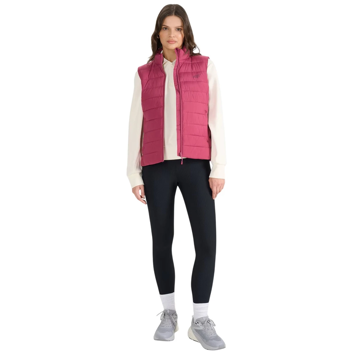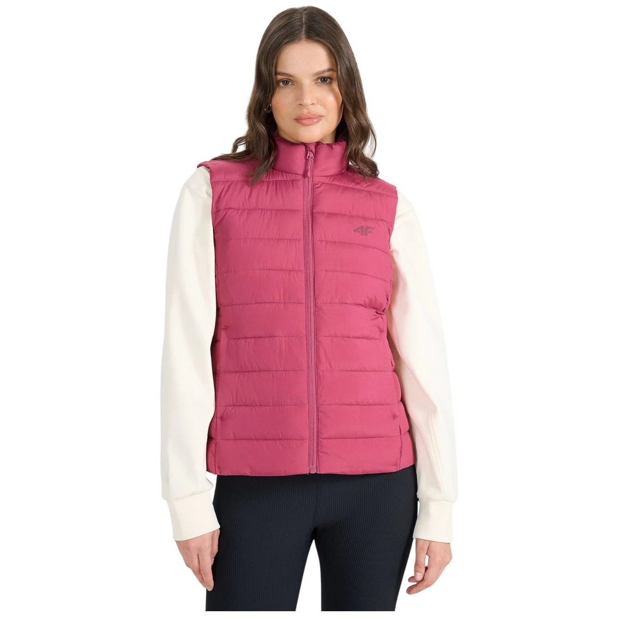 Il gilet da donna Vest Jacket F218 di 4F è uno strato leggero e pratico per le giornate più calde e le mezze stagioni. Grazie al taglio slim, si adatta alla figura e mette in risalto la linea sportiva del corpo. Le impunture orizzontali non solo esaltano il look outdoor, ma distribuiscono uniformemente l'imbottitura e migliorano l'isolamento termico. Il gilet è facile da piegare, non occupa spazio ed è ideale per l'uso quotidiano e le attività sportive.