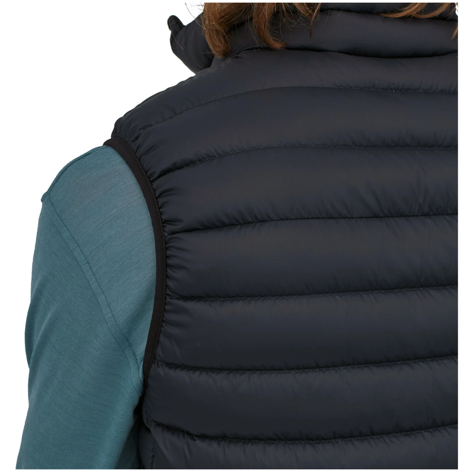 Il massimo comfort termico è garantito da un'imbottitura in piuma d' oca da 800 cuin e da un'imbottitura certificata RDS. Contribuiscono al calore anche i polsini elasticizzati sulle spalle e l'orlo con coulisse che aiuta a ridurre la fuoriuscita di calore. Potete riporre i vostri effetti personali in due calde tasche per le mani, in una tasca interna con zip sul petto o in due tasche interne aperte che possono essere utilizzate per riporre, ad esempio, le cinture di foca. La tasca sul petto funge anche da sacca in cui è possibile ripiegare l'intero gilet. Vanta inoltre la certificazione Fair Trade Certified™, che garantisce condizioni e valutazioni eque.