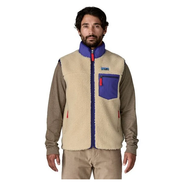 Il Gilet Classic Retro-X da uomo di Patagonia è la scelta ideale per il clima freddo, in quanto vi protegge sia dal freddo che dal vento. Il gilet è realizzato in poliestere parzialmente riciclato, completato all'esterno da un elegante e caldo pile da ¼". Il materiale è completato da una membrana antivento, da una fodera in rete e dal trattamento HeiQ® Pure, che conferisce al gilet resistenza agli odori e freschezza duratura. La tasca sul petto, la fascia in vita e l'area esterna del colletto sono in nylon al 100%, rifinito con un trattamento idrorepellente DWR . Il gilet è inoltre dotato di una cerniera con patta antivento, una tasca sul petto con cerniera e due calde tasche con cerniera con fodera spazzolata.