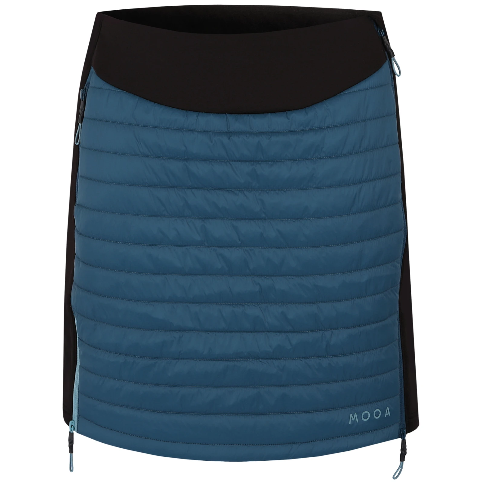 MOOA Liwi è una gonna ibrida da donna che combina protezione termica e libertà in un unico design funzionale. La parte centrale è imbottita con fibra cava di alta qualità, che isola perfettamente il calore e protegge dal freddo, mentre i lati elasticizzati garantiscono massima flessibilità e comfort durante l'uso.