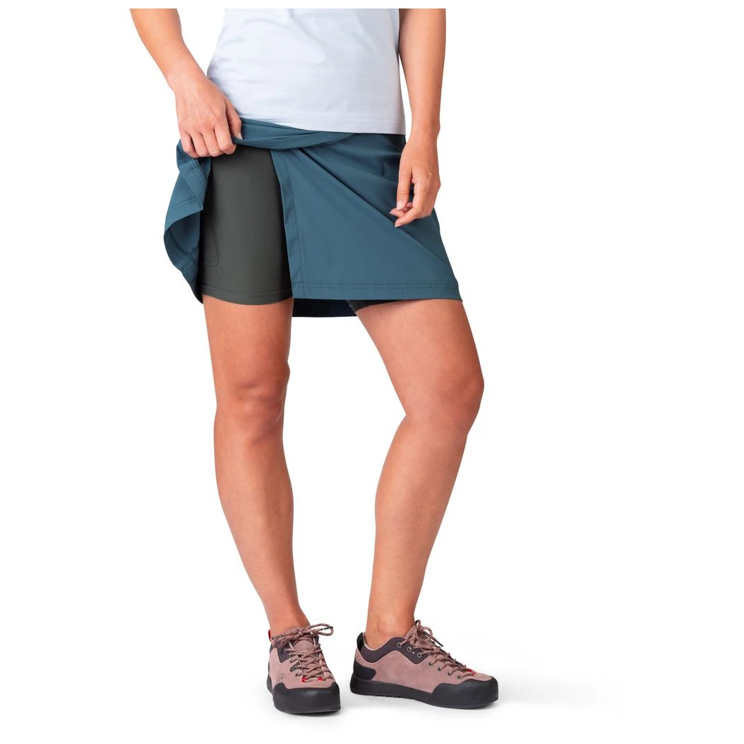 Pratico gonnellino da arrampicata con pantaloncini interni Mandrea di Rafiki per tutti gli appassionati di bouldering. Traspirante, ad asciugatura rapida, leggero e flessibile: tutte le caratteristiche necessarie sul campo. Un ampio polsino in vita mantiene la gonna in posizione per consentire agli arrampicatori di praticare le loro attività preferite con la massima libertà di movimento. Sulla coscia è presente una tasca interna per alcuni piccoli oggetti come le chiavi o il telefono cellulare. Questa fantastica gonna da arrampicata non dovrebbe mancare nello zaino di nessuno.