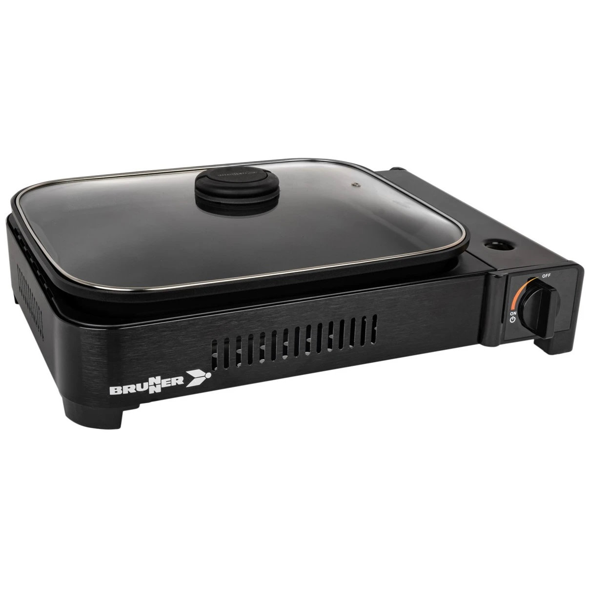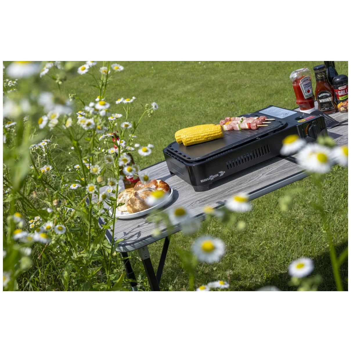 Il barbecue a gas Devil Megagrill di Brunner combina cottura e grigliatura. Dispone di una piastra/teglia con coperchio per cuocere e arrostire. Ideale come barbecue da tavolo portatile per il campeggio o i picnic, ma può essere utilizzato perfettamente anche a casa su balconi o terrazzi.
