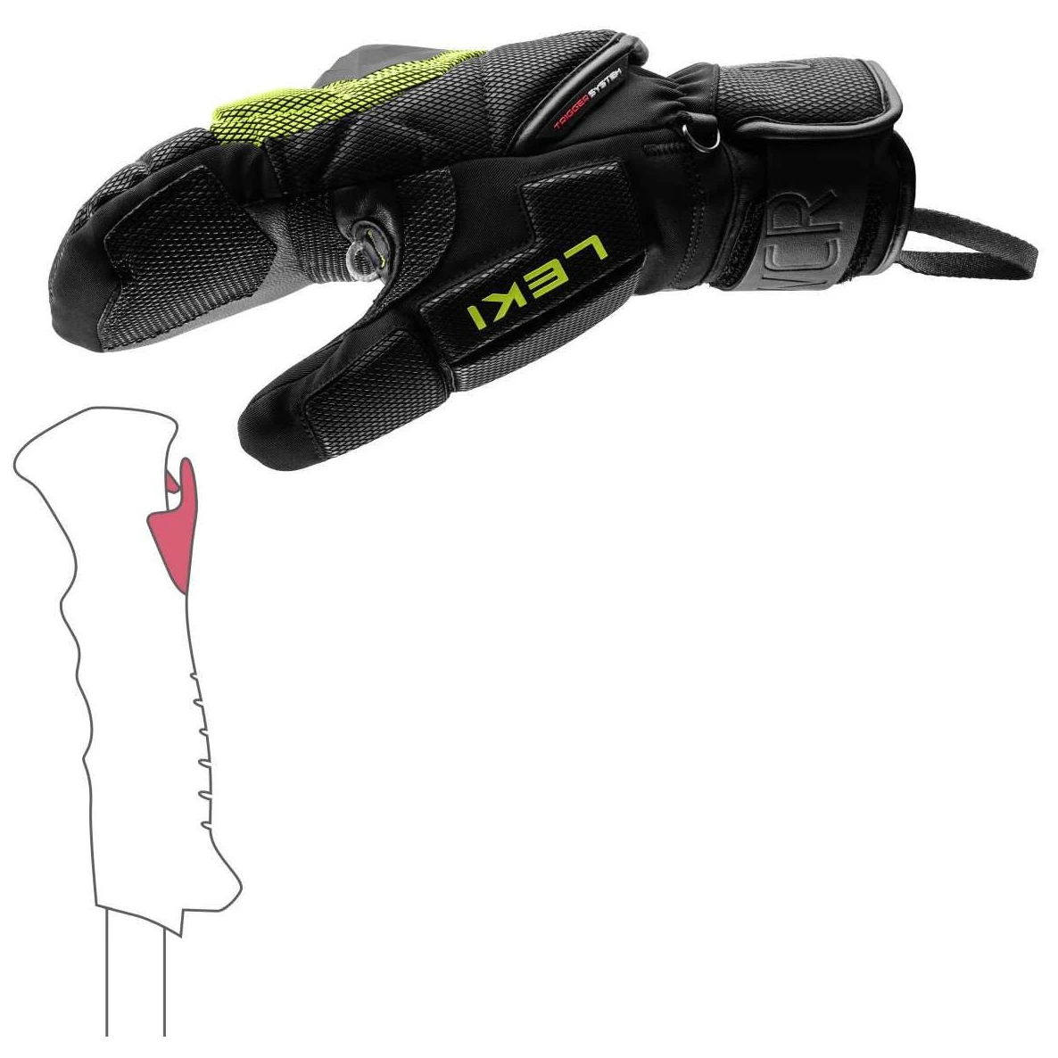 Grazie al sistema Trigger, puoi collegare i guanti in modo semplice e sicuro ai bastoncini Leki. Il collegamento diretto tra mano e bastoncino garantisce un controllo preciso, un aggancio e sgancio rapido e una sicura che protegge dal rischio di lesioni in caso di caduta. I guanti WCR Coach 3D Mitt sono l'attrezzatura ideale per tutti coloro che richiedono prestazioni, protezione e comfort senza compromessi nello sci da competizione.