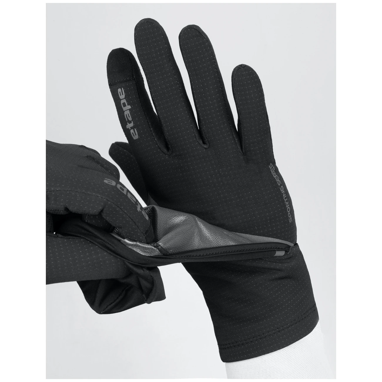 I guanti Etape Cover sono guanti a dita e muffole in uno. Gli stessi guanti a dita sono realizzati in materiale ThermoFit con isolamento termico. Con un semplice gesto, si trasformano in muffole con membrana SoftShell. Il palmo è dotato di silicone antiscivolo, il polsino elastico è allungato. Gli elementi di sicurezza riflettenti sono una garanzia. Sul pollice e sull'indice, i guanti sono dotati della tecnologia Smartouch, che consente di utilizzare il telefono touchscreen senza doversi togliere i guanti.