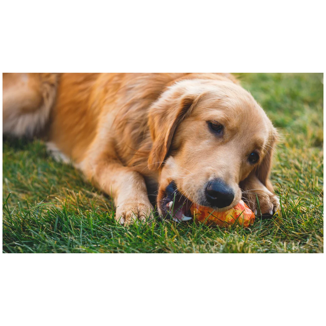 È realizzato in lattice molto resistente, perfetto per i cani che masticano. La sua forma è irregolare, per cui rimbalza in modo irregolare quando viene lanciato, il che interesserà la maggior parte dei cacciatori.