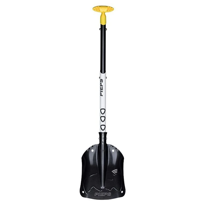 La pala da valanga con manico telescopico e impugnatura a "T" è realizzata in alluminio resistente e consente un lavoro efficiente anche su neve ghiacciata. Bordi affilati e poggiapiedi antiscivolo facilitano la presa, la pronunciata cresta centrale aumenta la rigidità e i quattro fori nella lama della pala consentono la costruzione di slitte improvvisate.