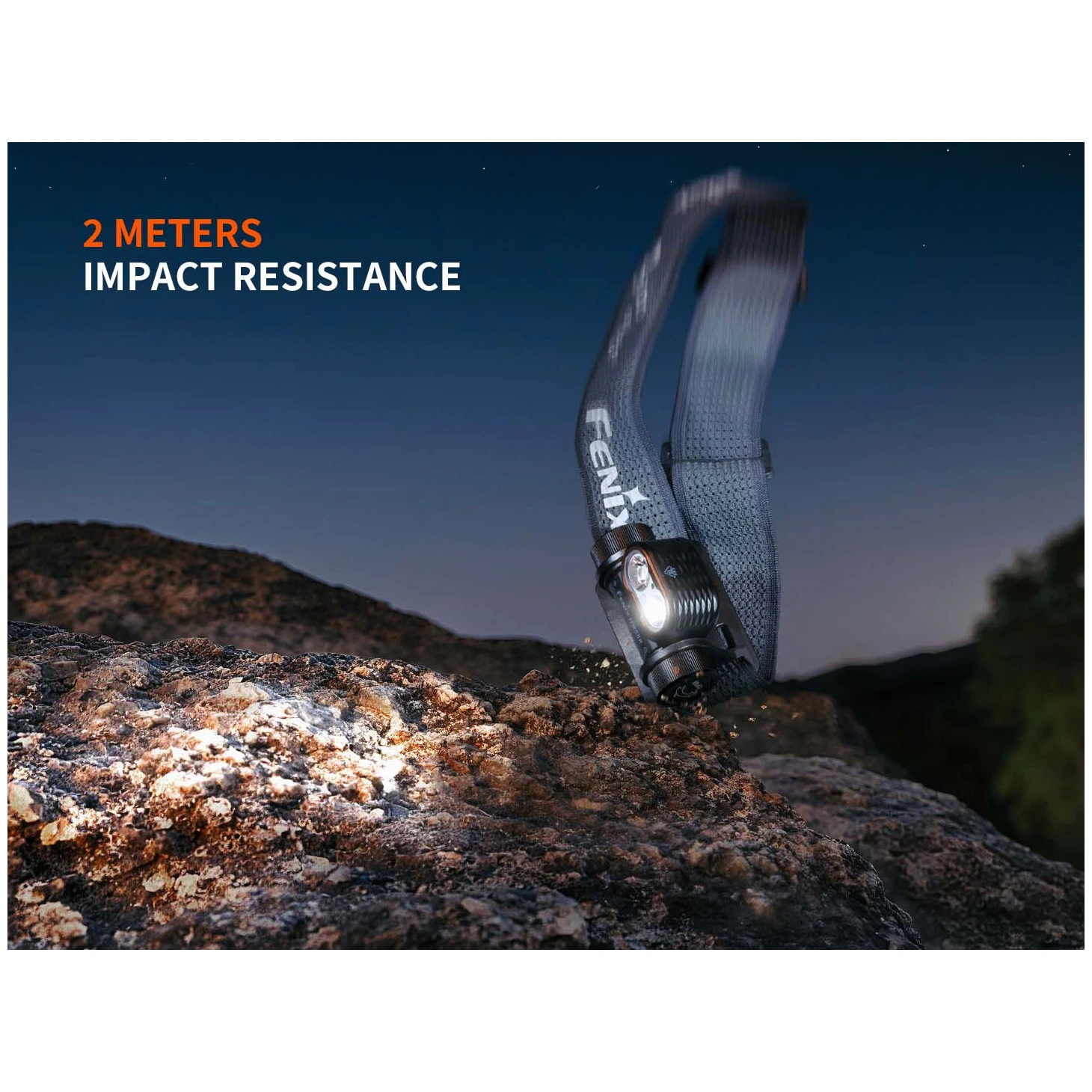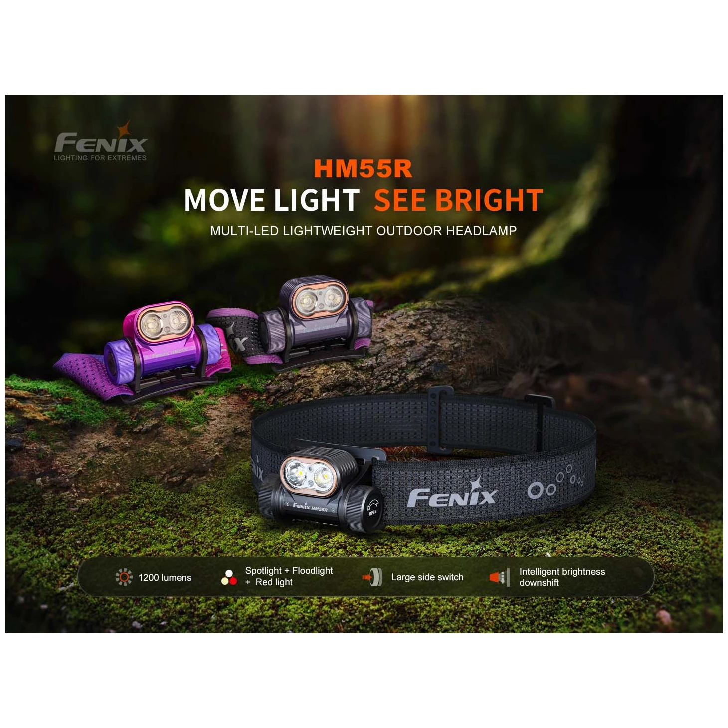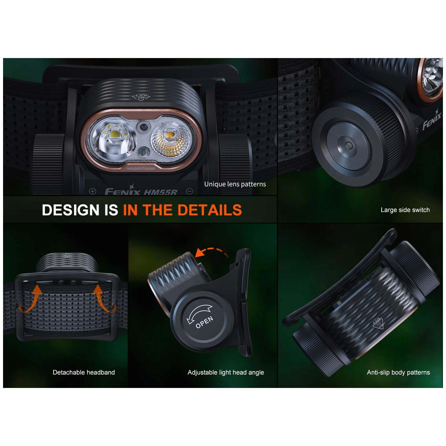 La struttura della HM55R è completamente resistente alla polvere e impermeabile fino a 2 metri di profondità secondo lo standard IP68, oltre a essere resistente agli urti da cadute da 2 metri di altezza. La lampada frontale è inoltre dotata di una funzione di prolungamento della durata della batteria. La HM55R è disponibile in 3 colori eleganti ed è adatta per l'uso professionale, varie attività sportive (escursionismo, campeggio, corsa, ciclismo, sci...), in ambienti sotterranei, per pescatori e altri usi.